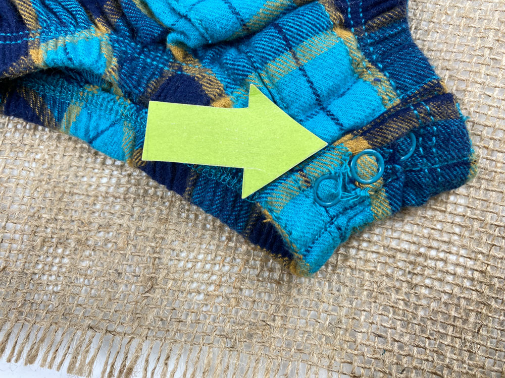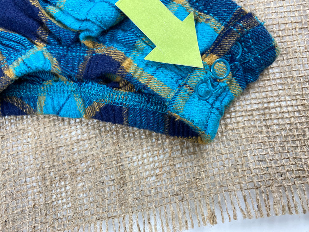 قسمت پایین لباس سمت دکمه پارچه ریش ریش شده است
