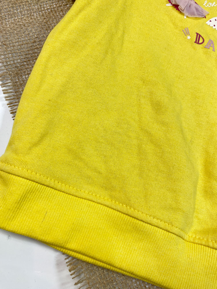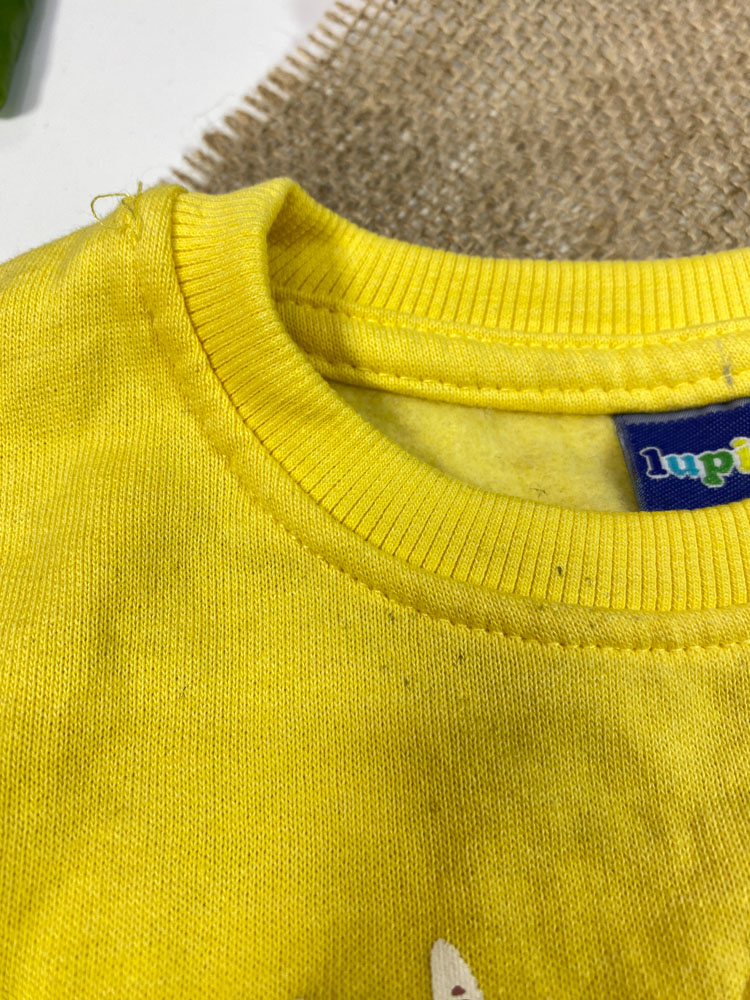 ایراد دار _ بلوز دخترانه آستین بلند برند لوپیلو طرح خرگوش یقه گرد بدون جیب زرد رنگ – 2 تا 4 سال