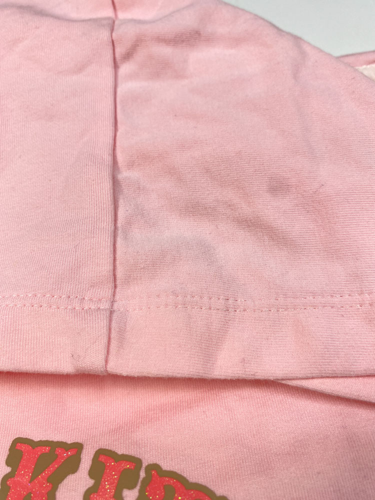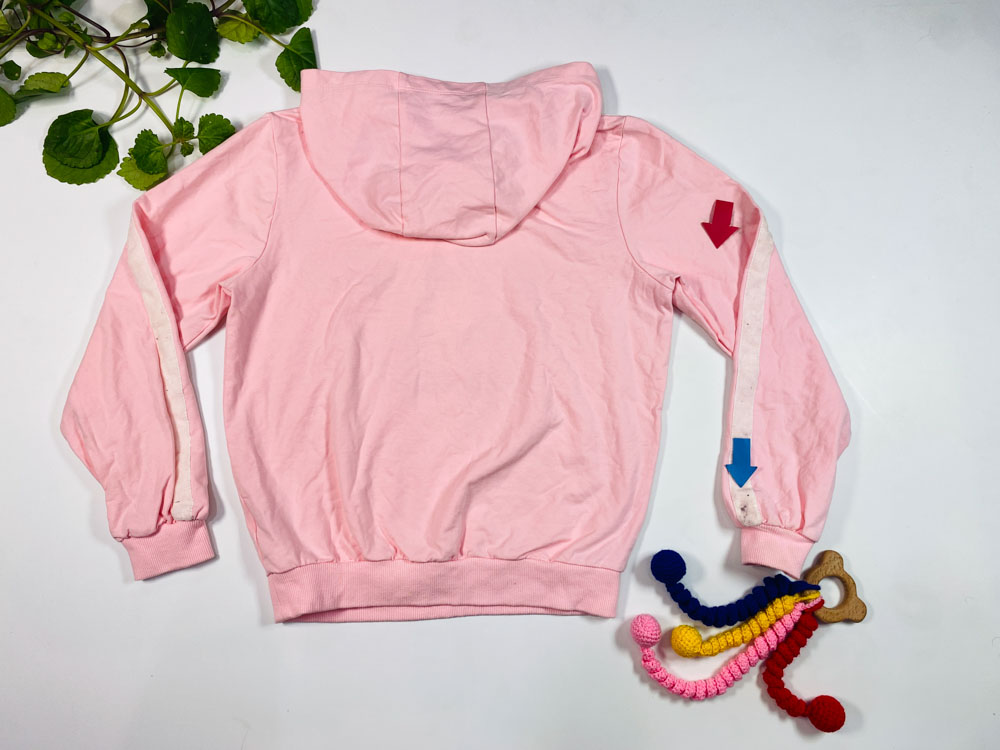 ایراد دار _ بلوز دخترانه آستین بلند طرح تدی هودی کلاه دار صورتی کمرنگ – 8 تا 10 سال
