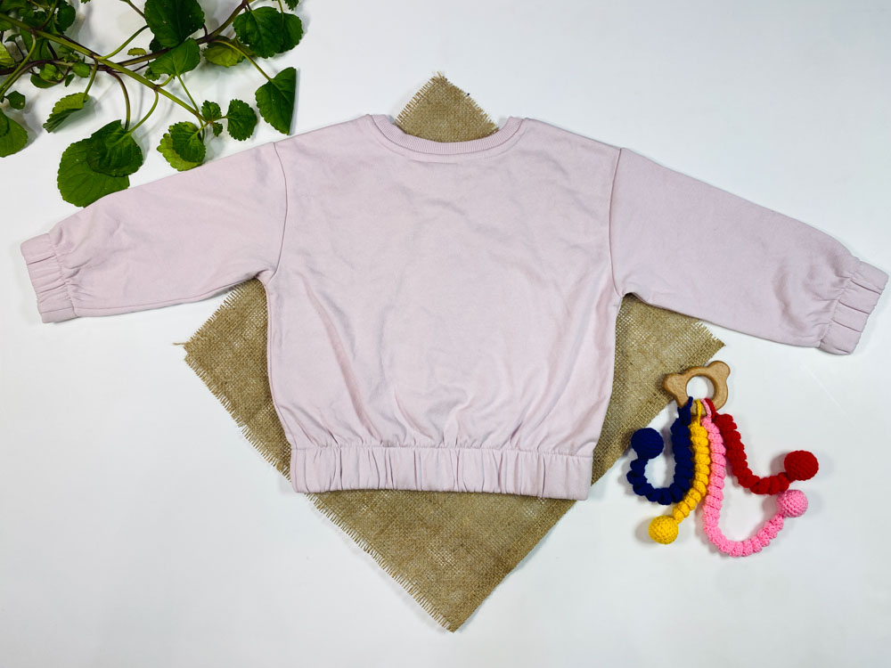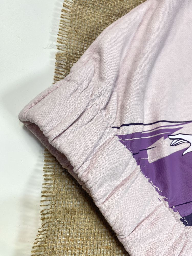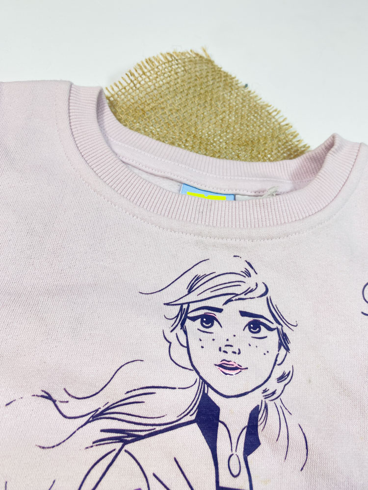 ایراد دار _ بلوز دخترانه آستین بلند طرح دختر دورس یقه گرد بنفش رنگ – 2 تا 4 سال