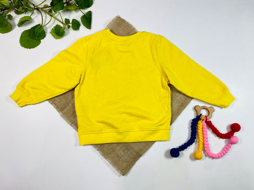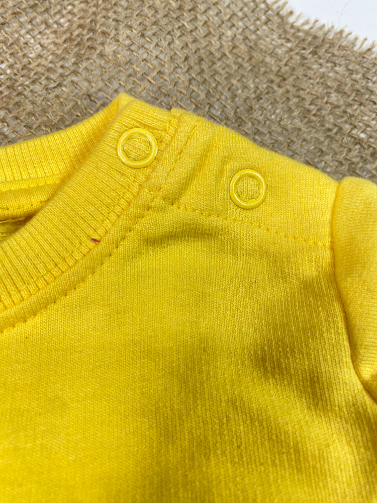 ایراد دار _ بلوز نوزادی آستین بلند برند لوپیلو طرح ساده دورس یقه گرد زرد رنگ – 2 تا 6 ماه