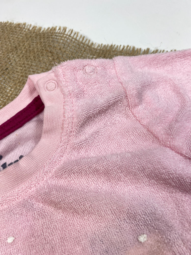 ایراد دار _ بلوز نوزادی دخترانه آستین بلند برند لوپیلو طرح هاپو یقه کرد صورتی کمرنگ – 12 تا 24 ماه