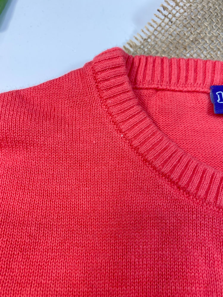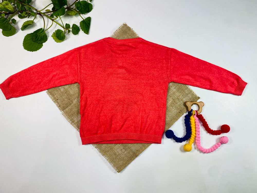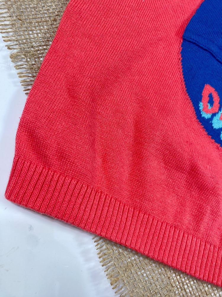 ایراد دار _ بلوز نوزادی دخترانه آستین بلند برند لوپیلو طرح دایره یقه گرد جلو جیب صورتی پر رنگ – 12 تا 24 ماه