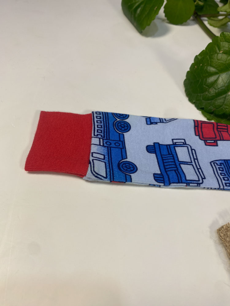 ایراد دار _ سرهمی پسرانه آستین بلند طرح ماشین زیپی جورابی آبی رنگ