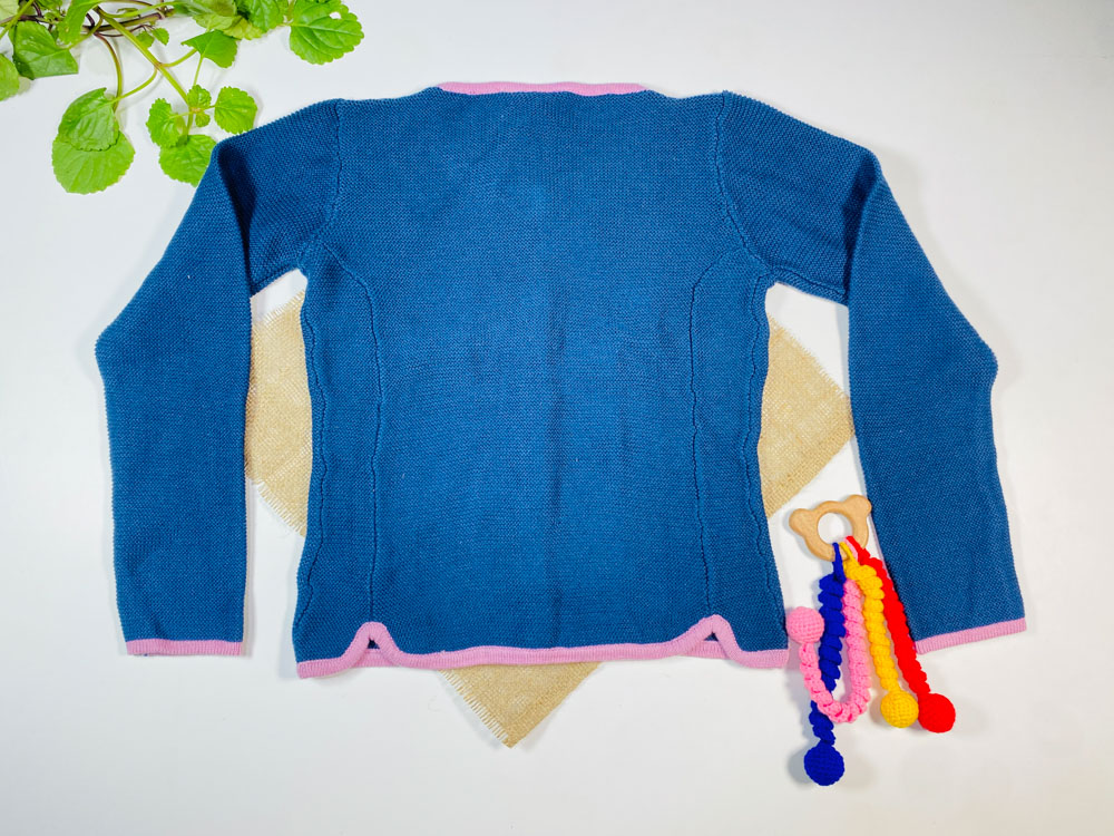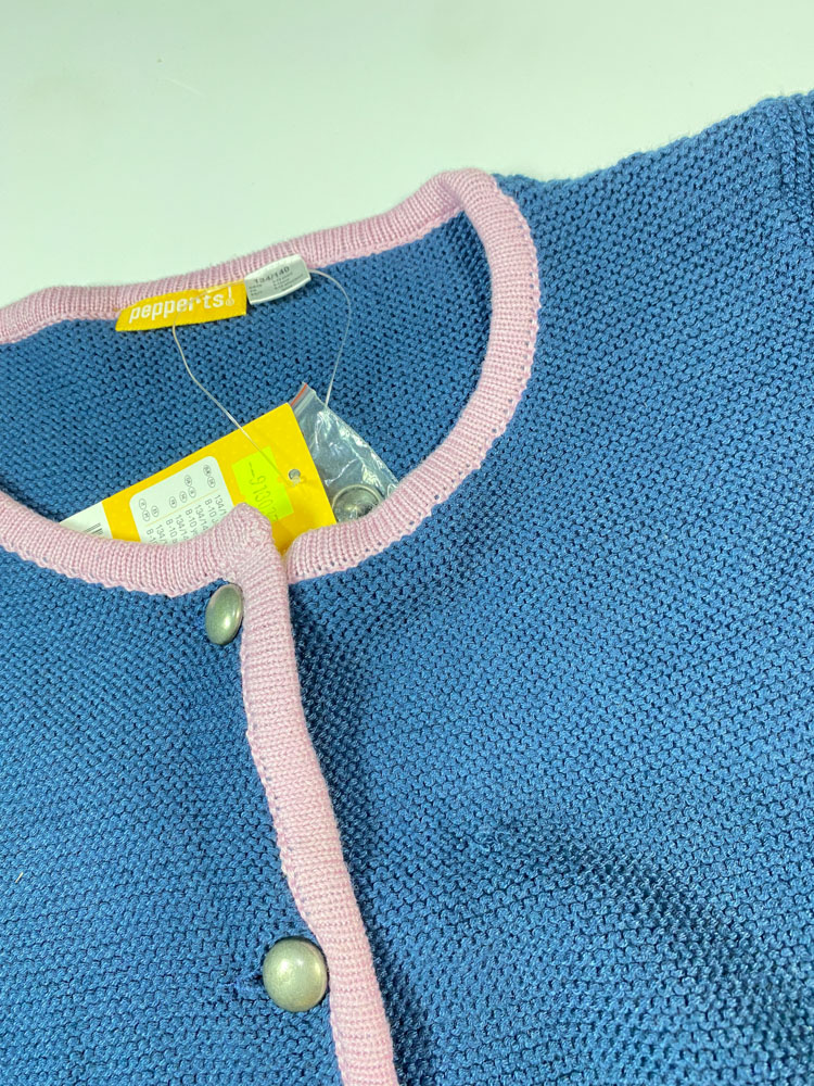 ایراد دار _ سویشرت دخترانه آستین بلند طرح ساده جلو دکمه بدون کلاه سورمه ای رنگ – 8 تا 9 سال