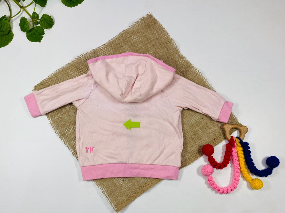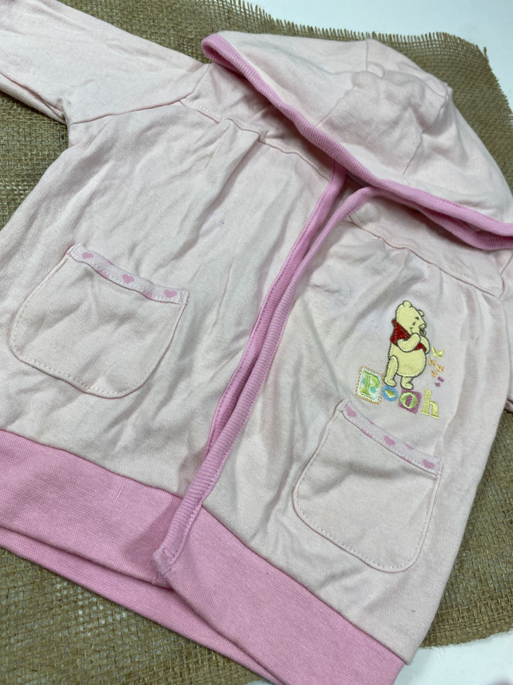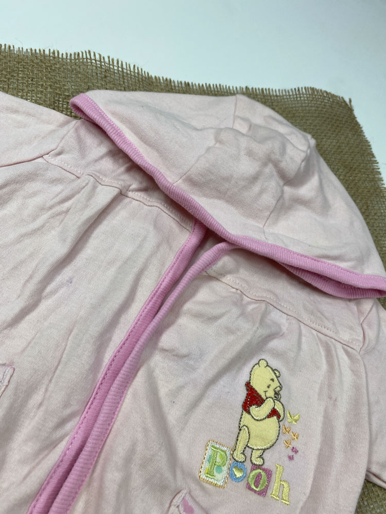 ایراد دار _ سویشرت نوزادی دخترانه آستین بلند طرح خرس پو کلاه دار جلو باز صورتی کمرنگ – 6 تا 12 ماه