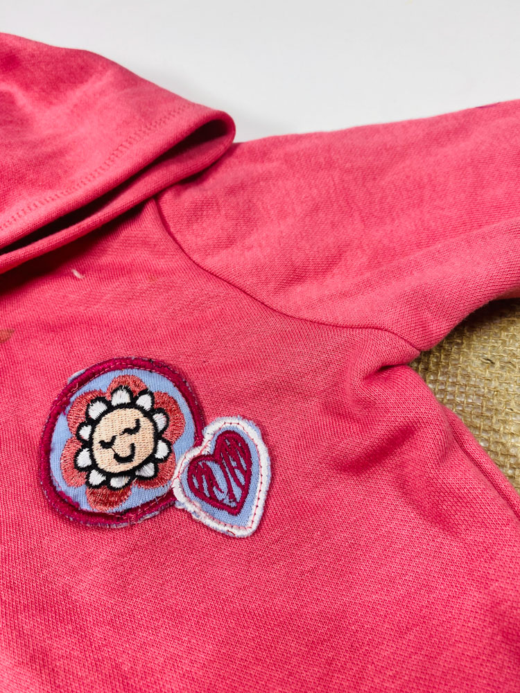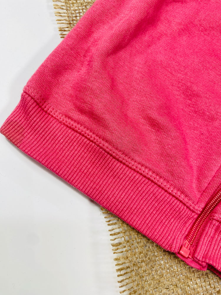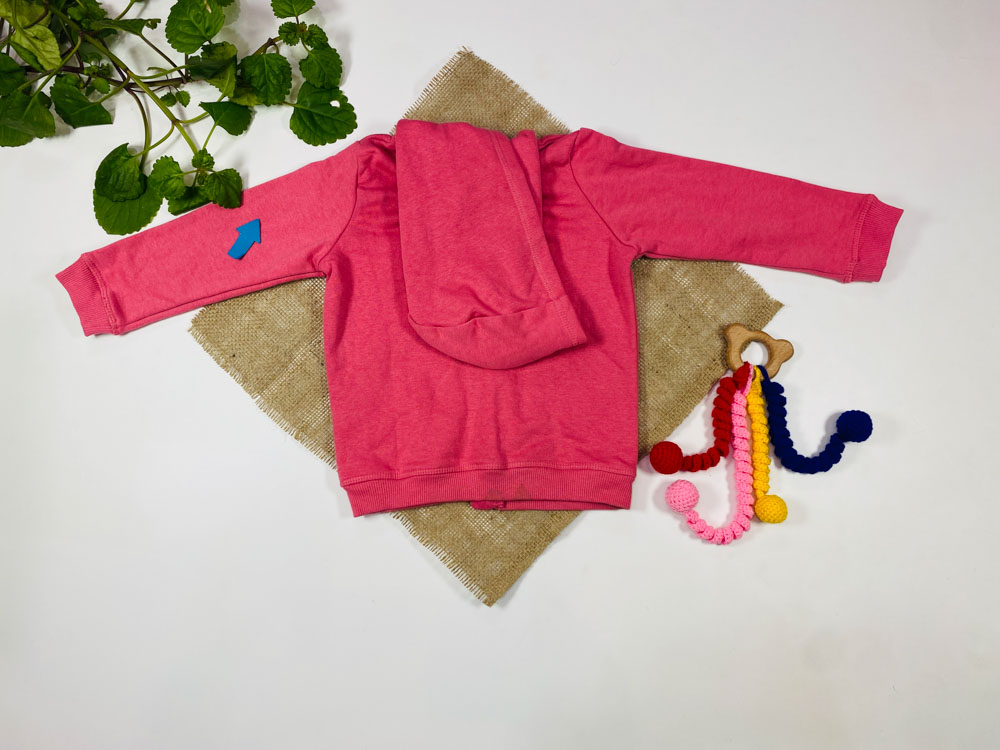 ایراد دار _ سویشرت نوزادی دخترانه آستین بلند برند لوپیلو طرح گل کلاه دار جلو زیپ نیلی رنگ – 12 تا 24 ماه