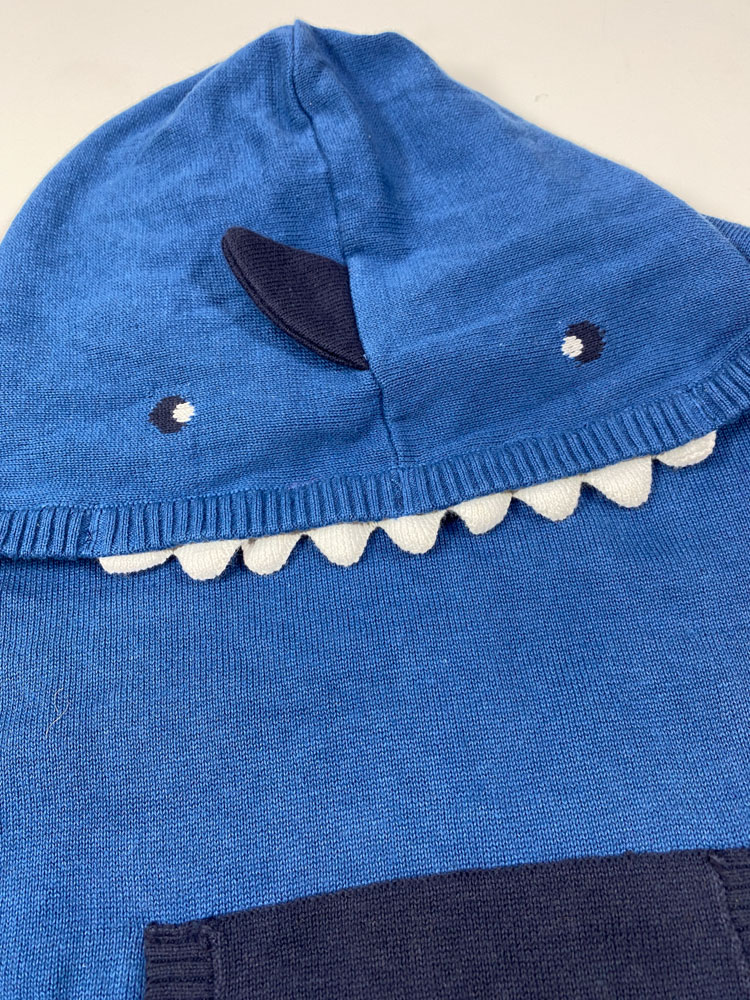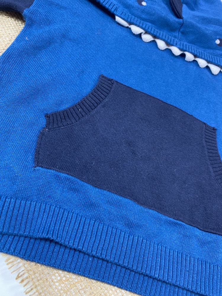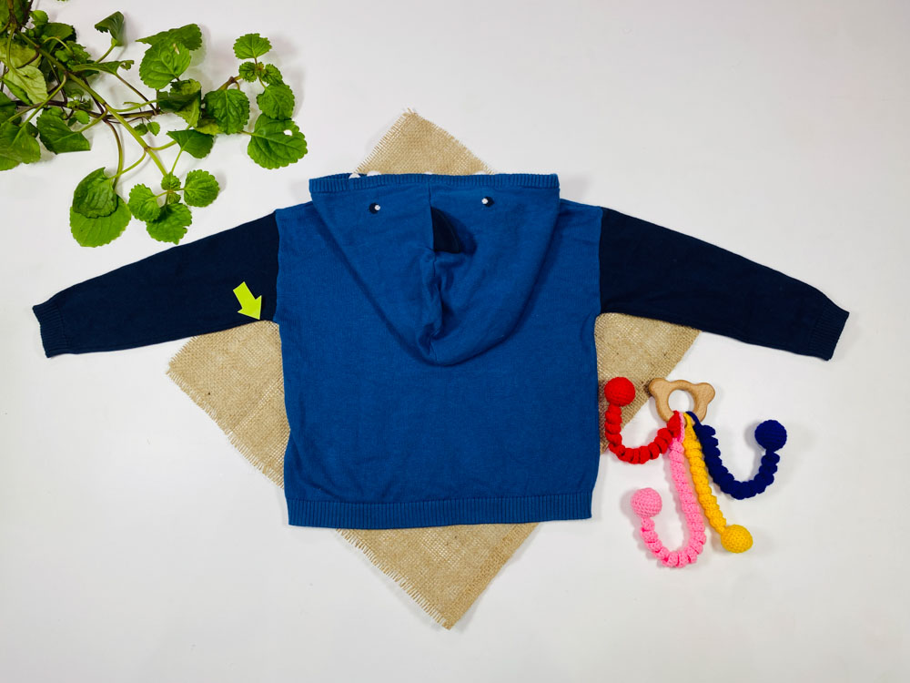 ایراد دار _ سویشرت نوزادی پسرانه آستین بلند طرح ساده کلاه دار جلو بسته جیب دار آبی رنگ – 6 تا 12 ماه