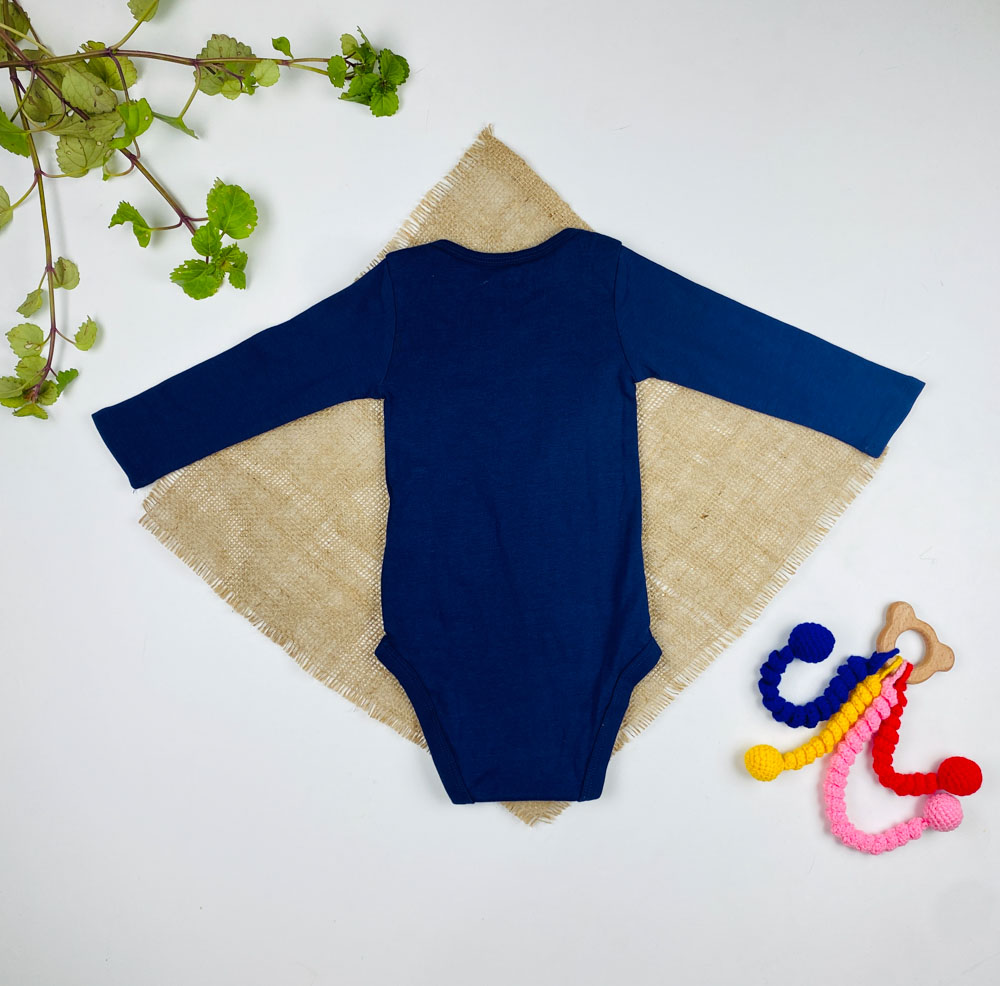 بادی نوزادی آستین بلند برند لوپیلو طرح ساده یقه گرد سرمه ای رنگ – 6 تا 12 ماه