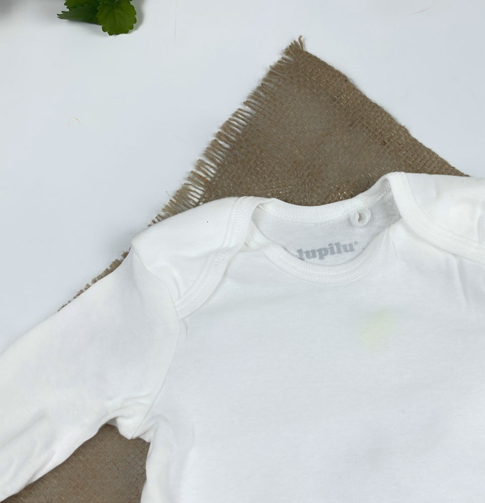 بادی نوزادی آستین بلند برند لوپیلو طرح ساده یقه گرد سفید رنگ – 6 تا 12 ماه