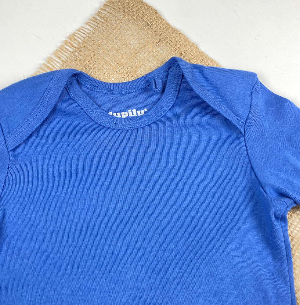بادی نوزادی آستین بلند برند لوپیلو طرح ساده یقه گرد آبی سرمه ای رنگ