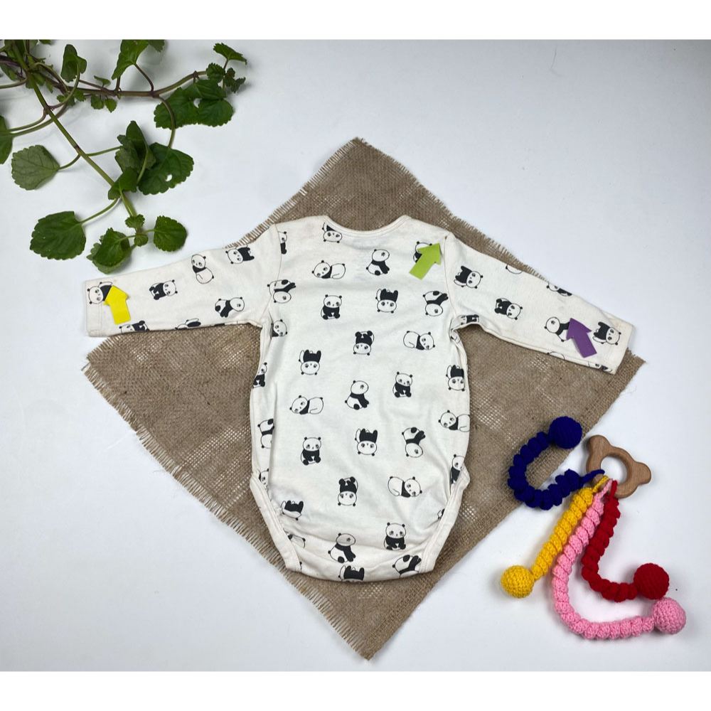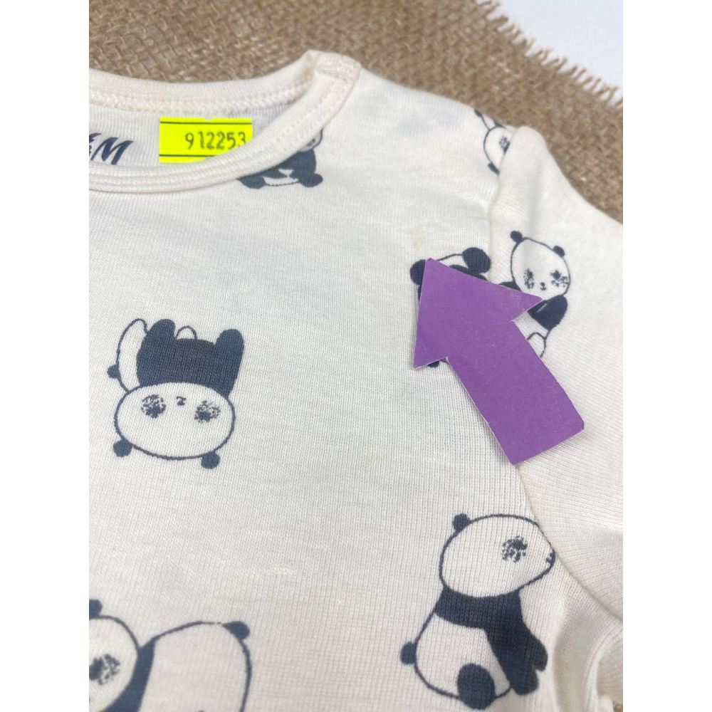 بادی نوزادی آستین بلند برند h and m طرح پاندا یقه گرد سفید رنگ – 2 تا 6 ماه