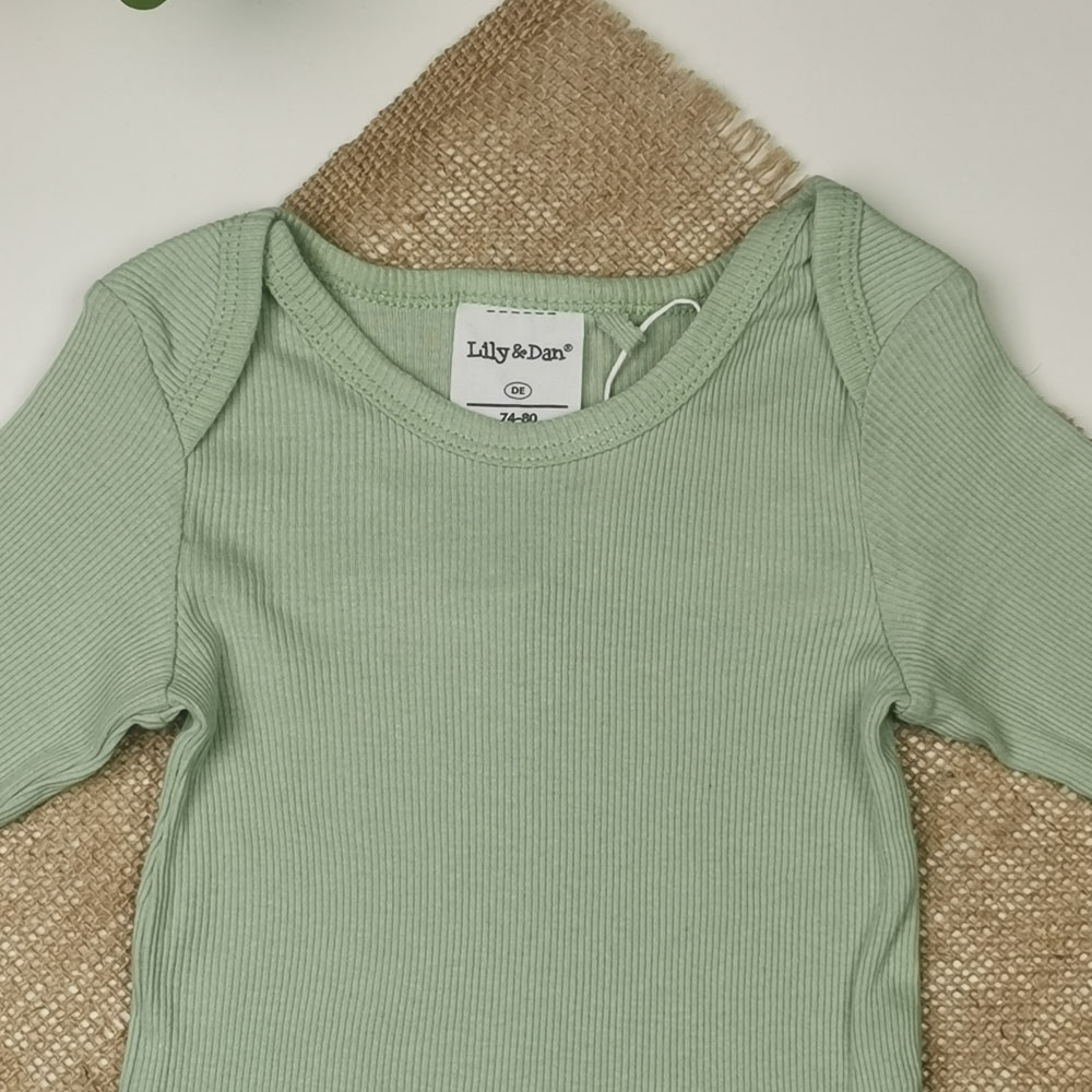 بادی نوزادی آستین بلند برند Lily and Dan طرح کبریتی سبز رنگ