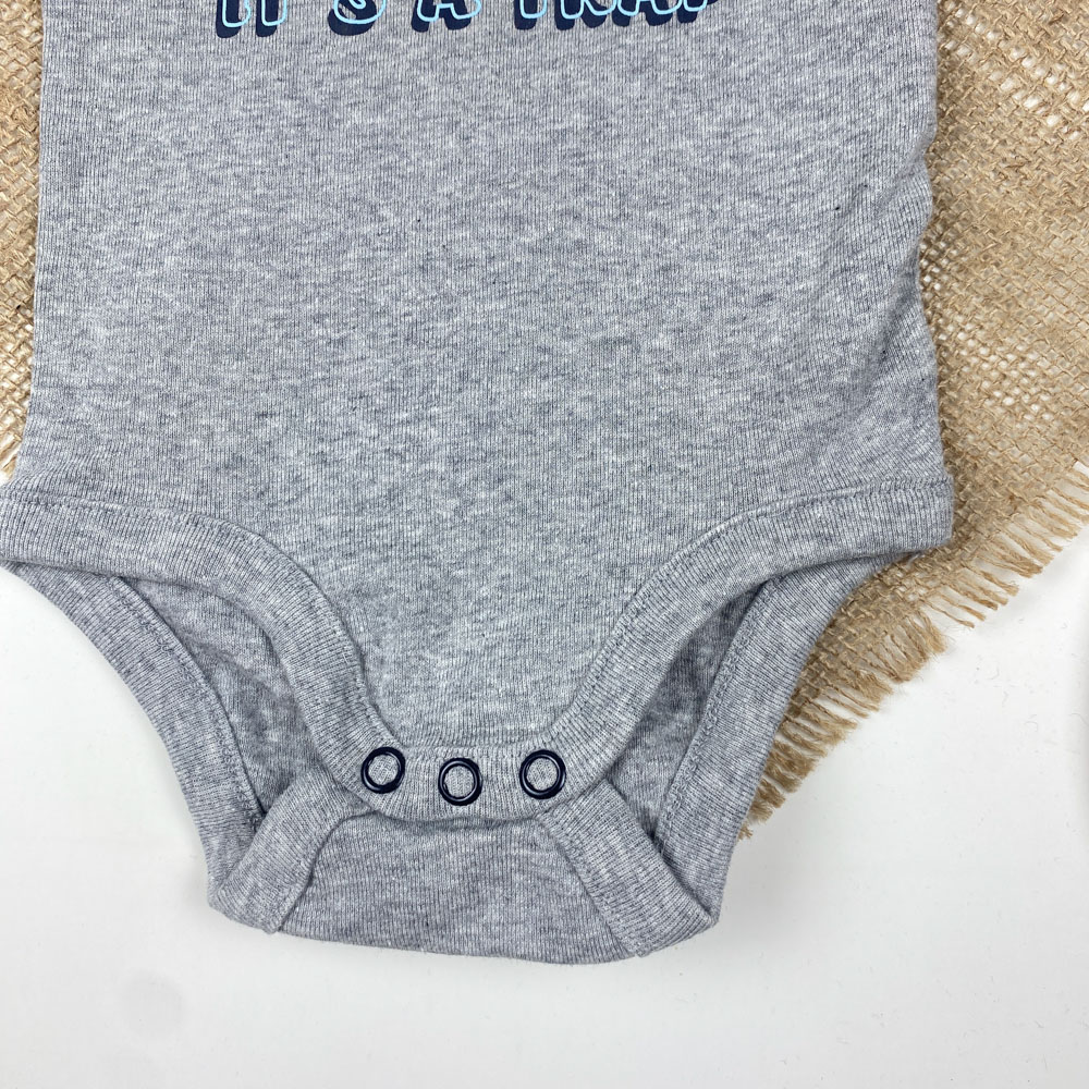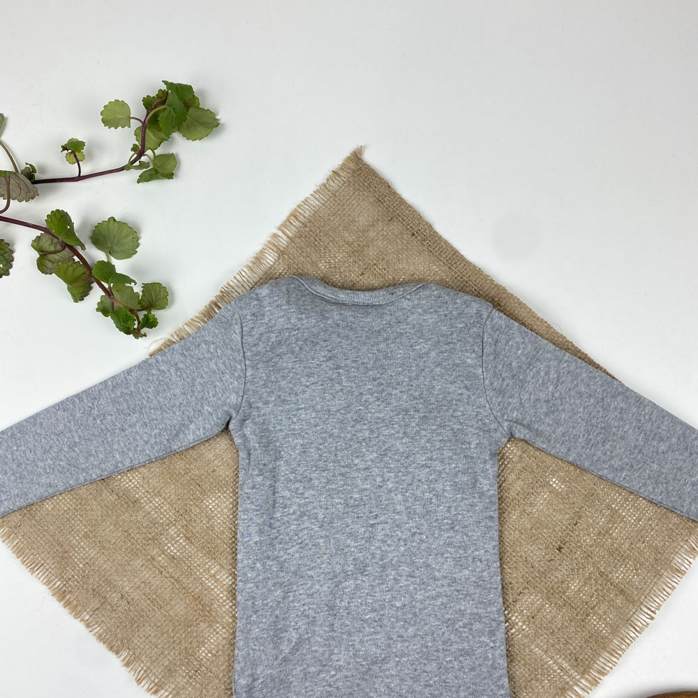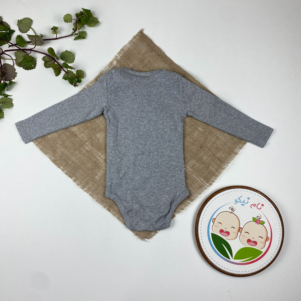 بادی نوزادی آستین بلند طرح خرگوش یقه گرد بدون دکمه طوسی رنگ – 6 تا 12 ماه