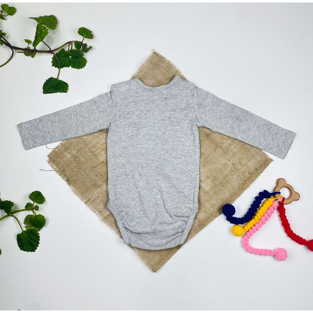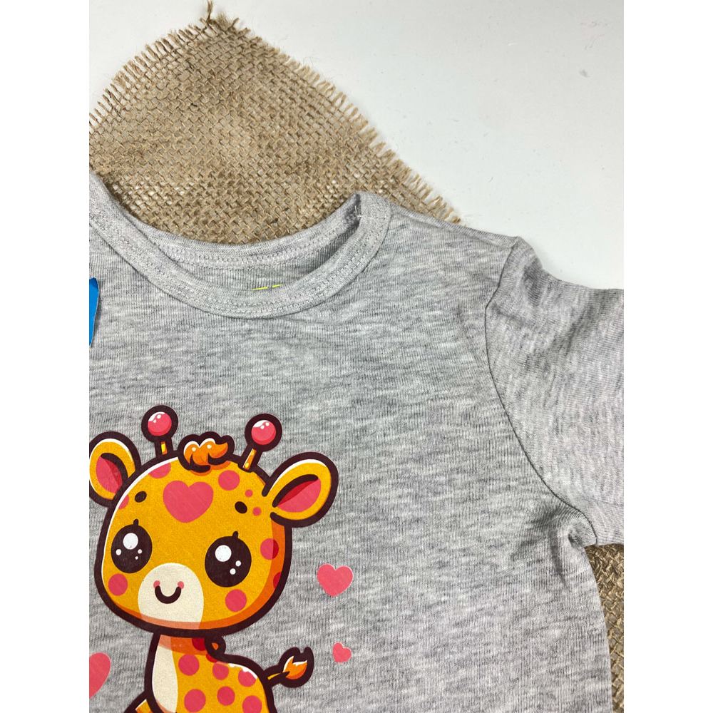 بادی نوزادی آستین بلند طرح زرافه یقه گرد طوسی رنگ – 12 تا 24 ماه