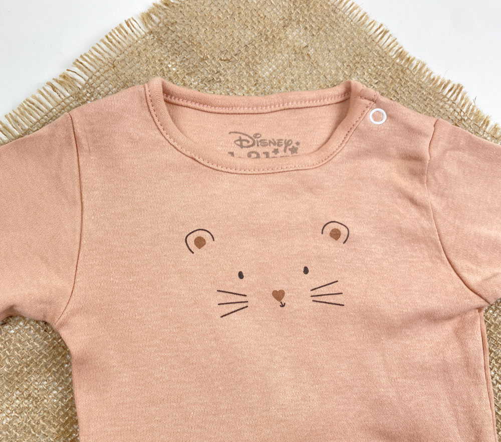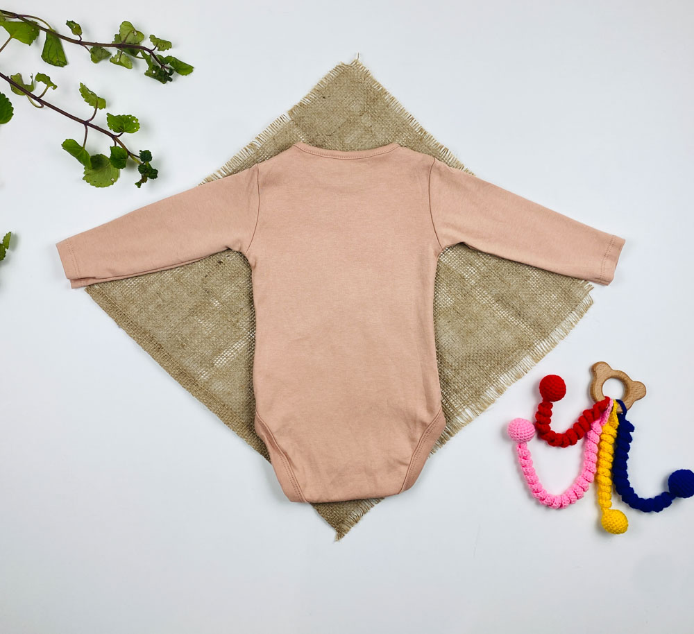 بادی نوزادی آستین بلند طرح پیشی یقه گرد جلو بسته نسکافه ای رنگ – 6 تا 9 ماه