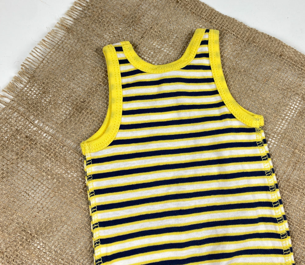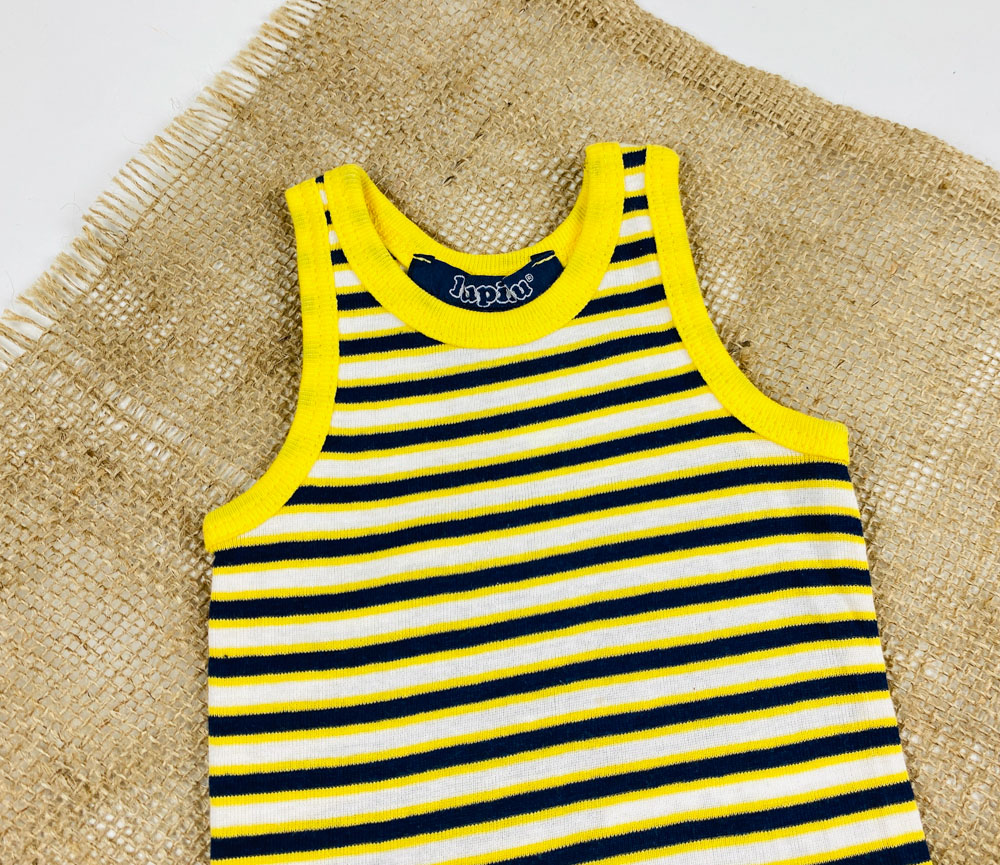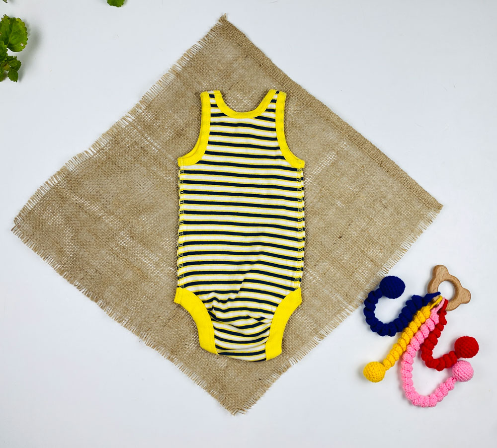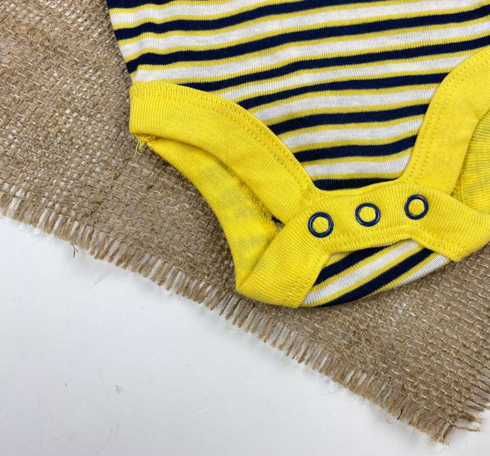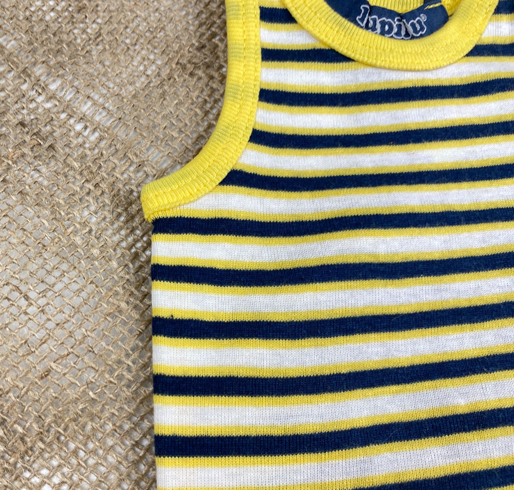 بادی نوزادی آستین تاپ برند لوپیلو طرح راه راه حلقه ای زرد رنگ