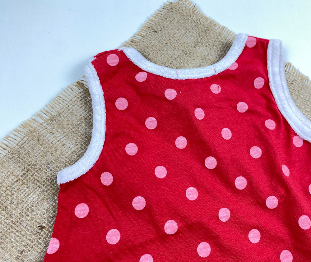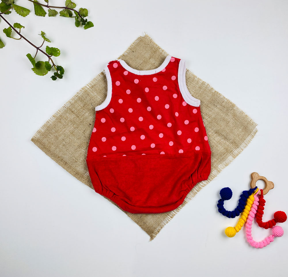 بادی نوزادی آستین تاپ برند Disnep طرح کفشدوزکی یقه گرد قرمز رنگ