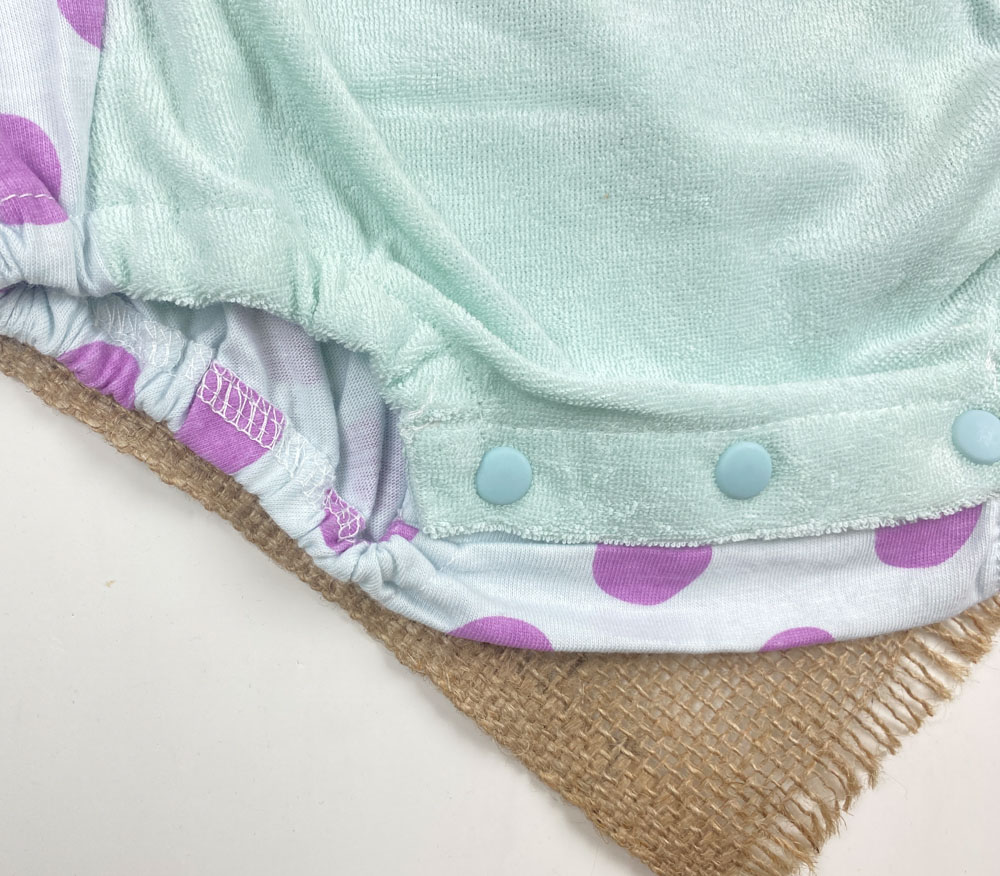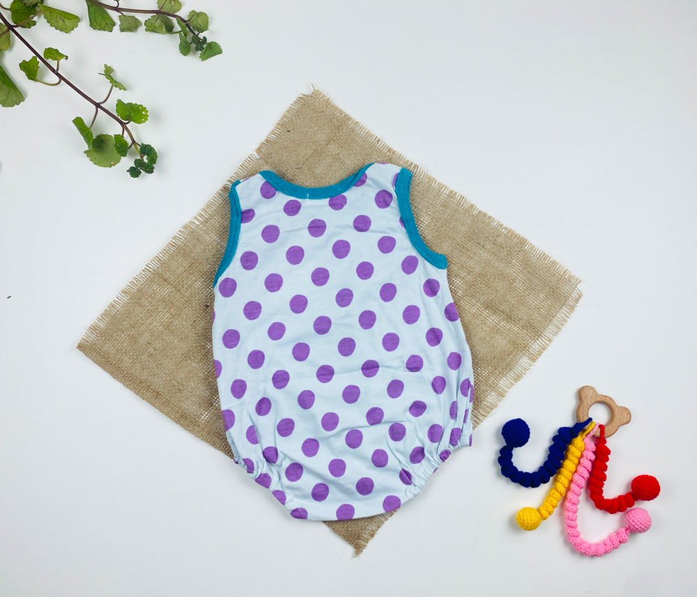 بادی نوزادی آستین تاپ طرح توپ توپی بنفش یقه گرد آبی آسمانی رنگ