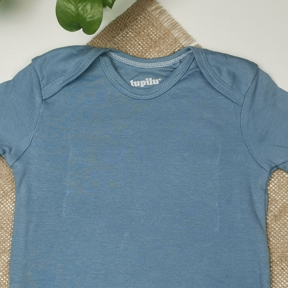 بادی نوزادی آستین کوتاه برند لوپیلو طرح جلو بسته آبی نفتی رنگ