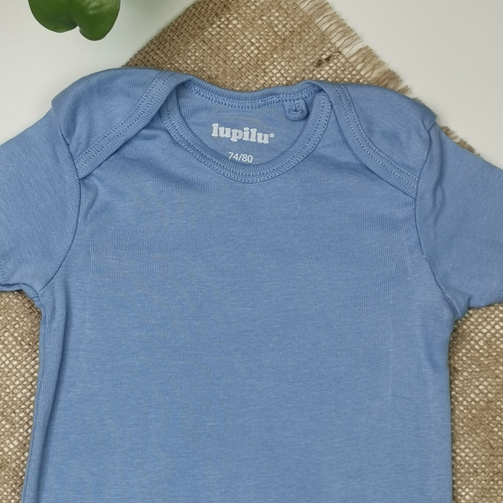 بادی نوزادی آستین کوتاه برند لوپیلو طرح جلو بسته نیلی رنگ – 6-12 ماه