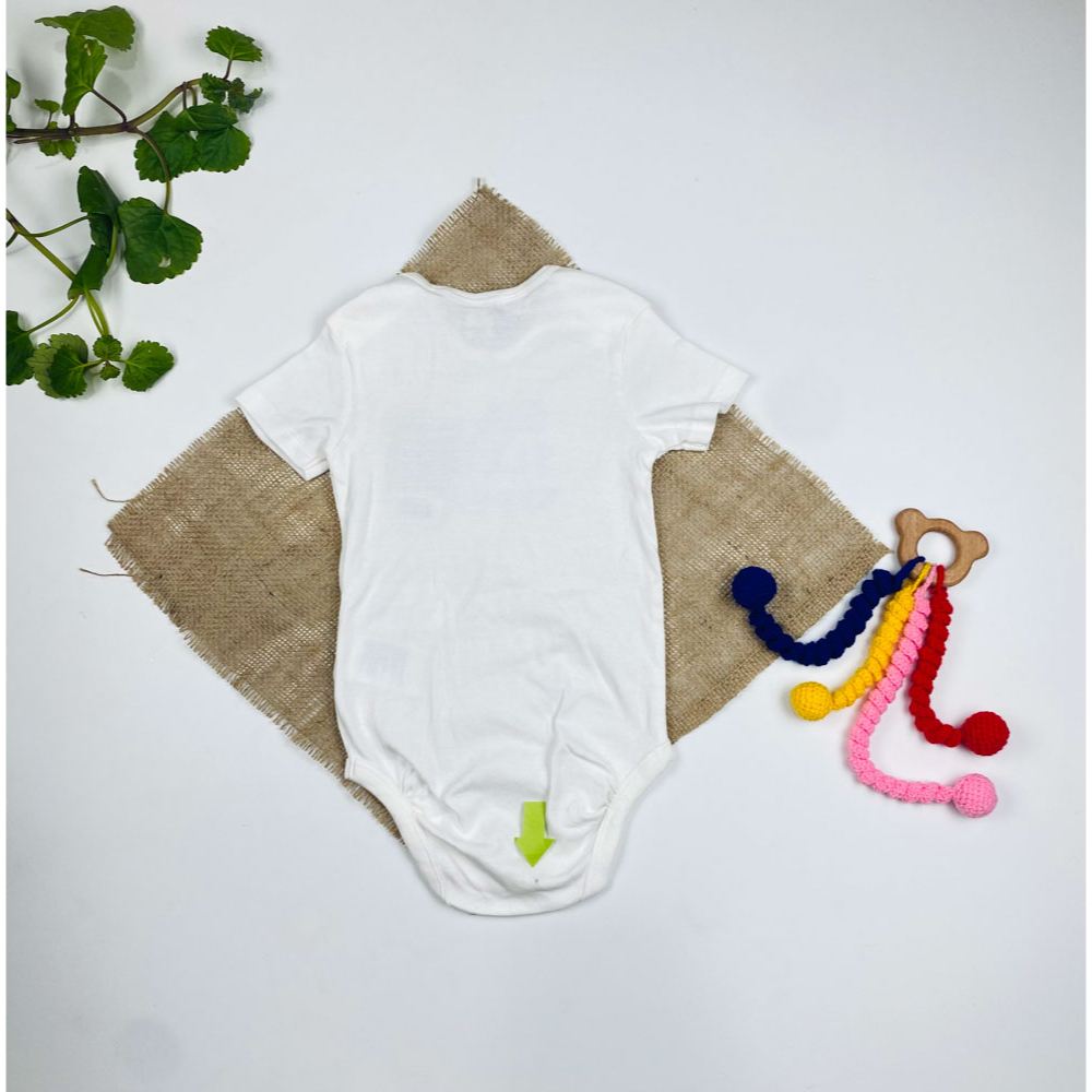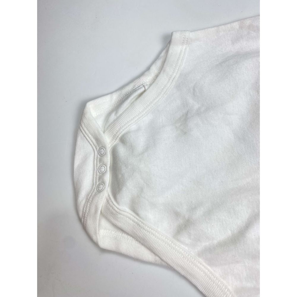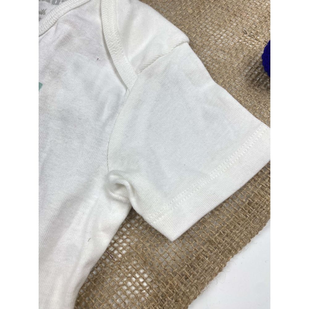 بادی نوزادی آستین کوتاه برند لوپیلو طرح نوشته انگلیسی یقه گرد ساده سفید رنگ – 6 تا 12 ماه