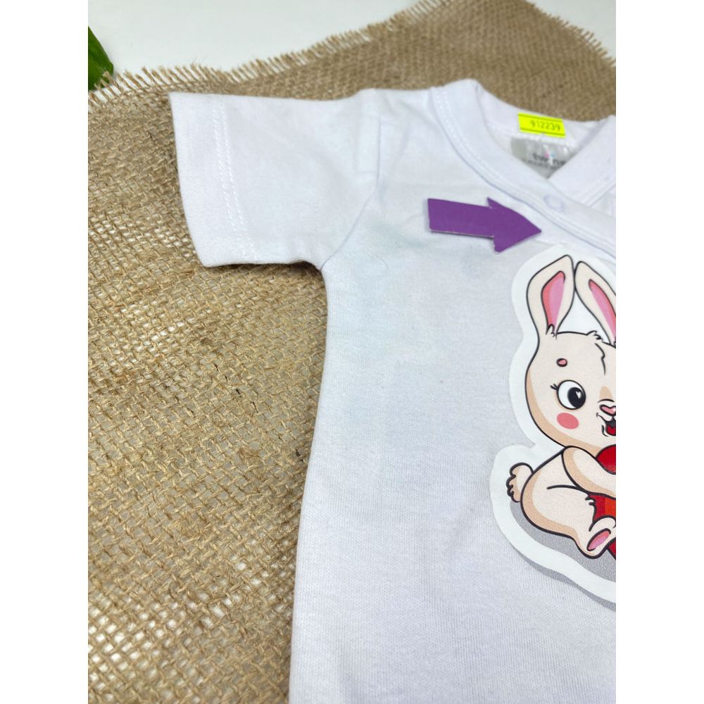 بادی نوزادی آستین کوتاه طرح خرگوش بادی جلو دکمه ای سفید رنگ – 2 تا 3 ماه