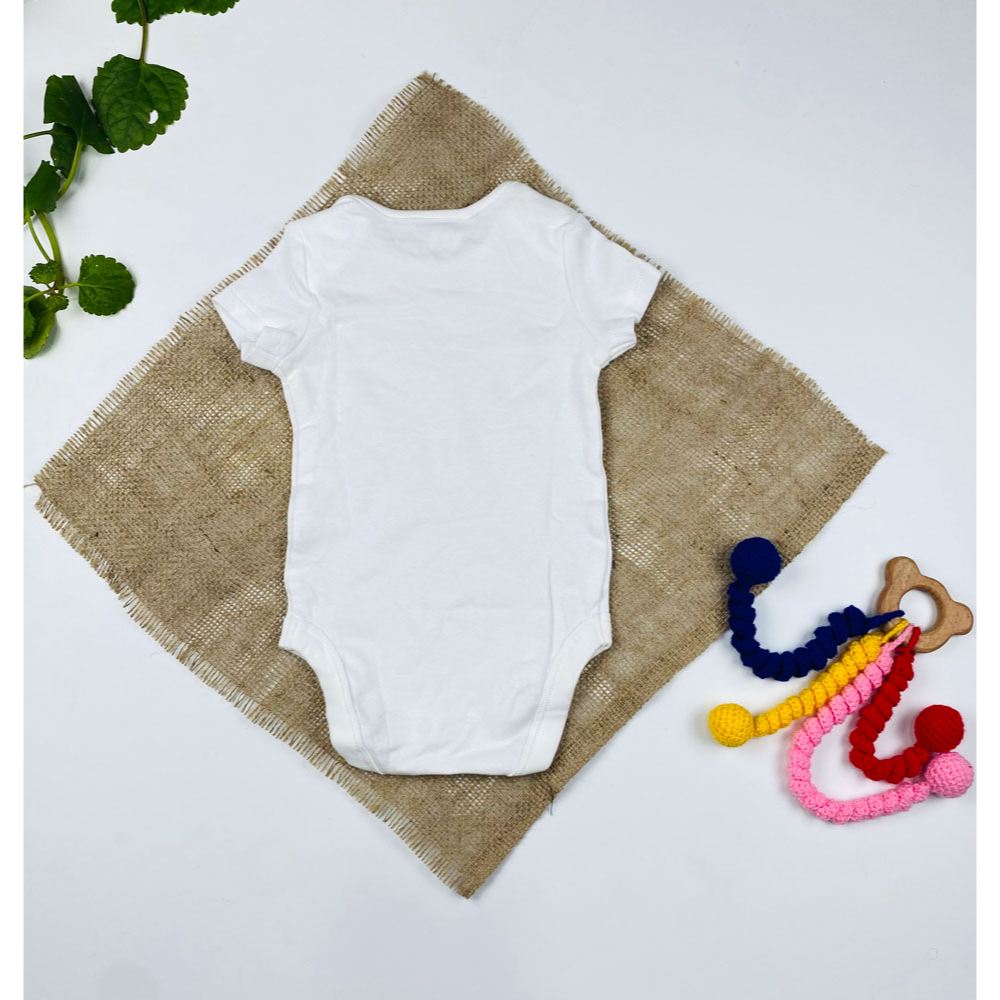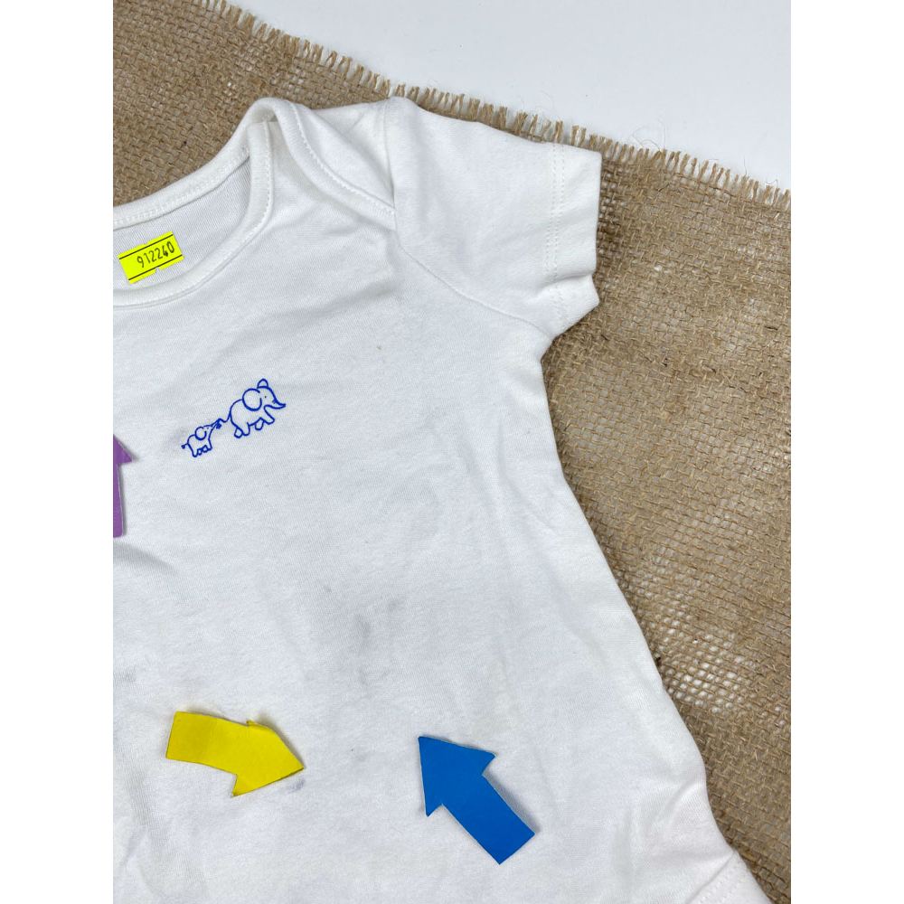 بادی نوزادی آستین کوتاه طرح فیل ساده یقه گرد سفید رنگ – 2 تا 6 ماه