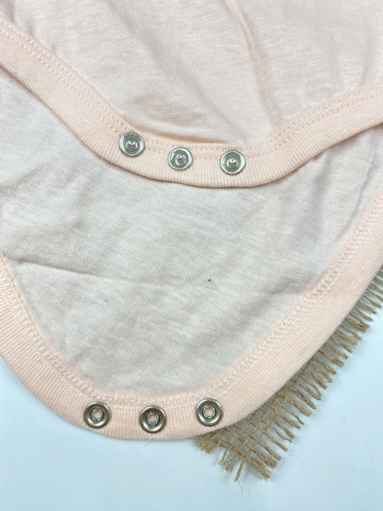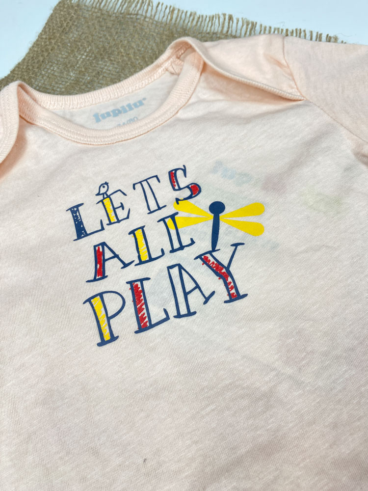 بادی نوزادی دخترانه آستین بلند برند لوپیلو طرح سنجاقک و نوشته گلبه ای روشن رنگ – 6 تا 12 ماه