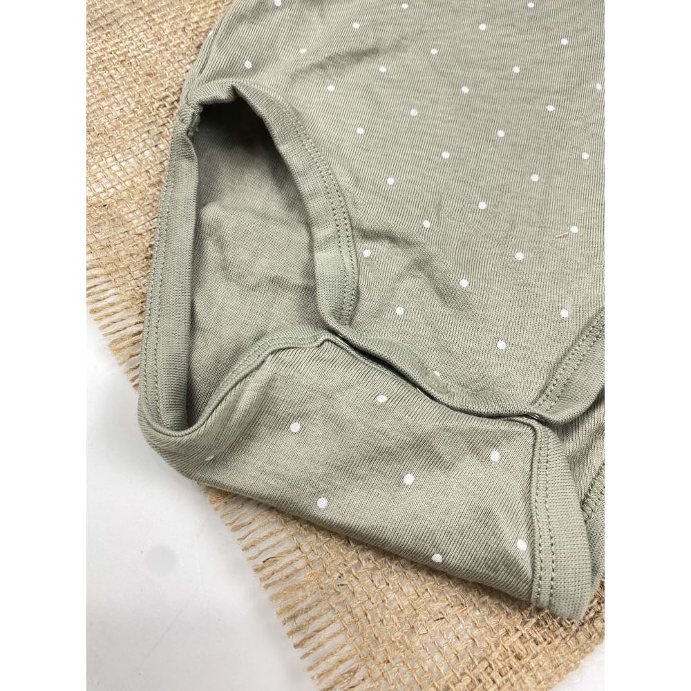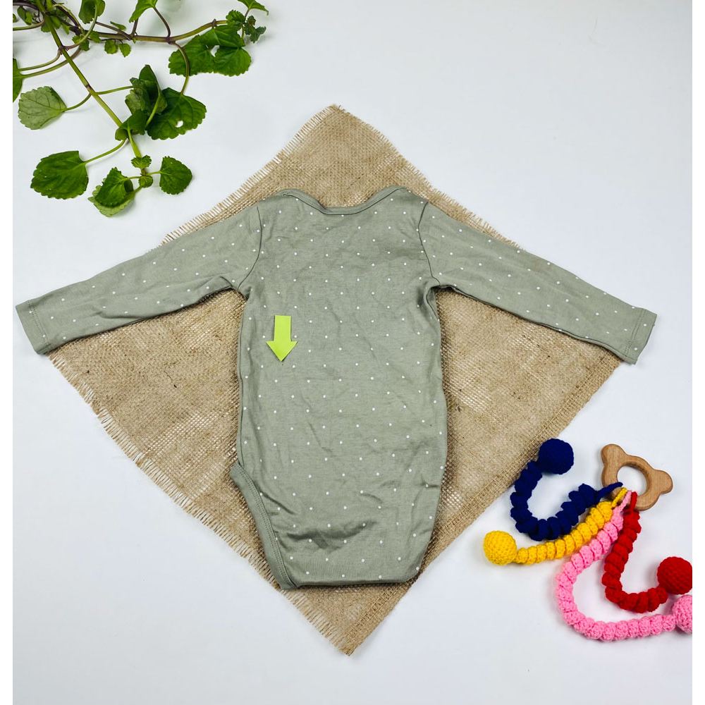 بادی نوزادی دخترانه آستین بلند برند h and m طرح خال خالی یقه گرد طوسی رنگ – 6 ماه
