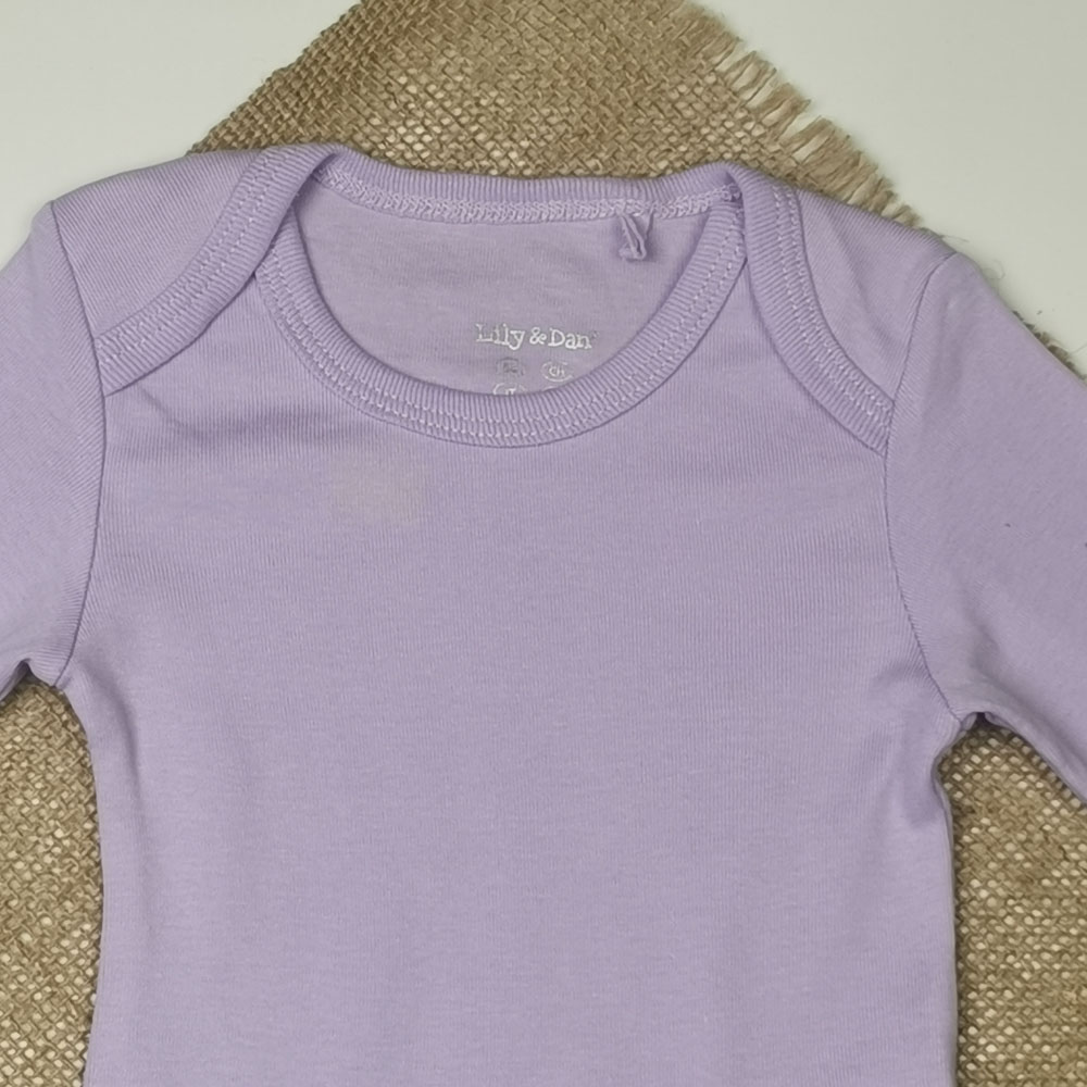 بادی نوزادی دخترانه آستین بلند برند Lily and Dan طرح جلو بسته یاسی رنگ