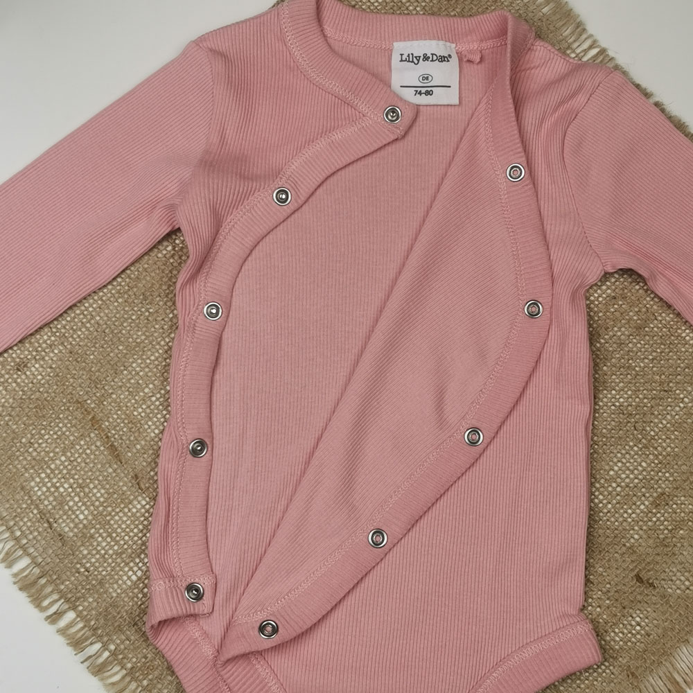 بادی نوزادی دخترانه آستین بلند برند Lily and Dan طرح کبریتی صورتی رنگ