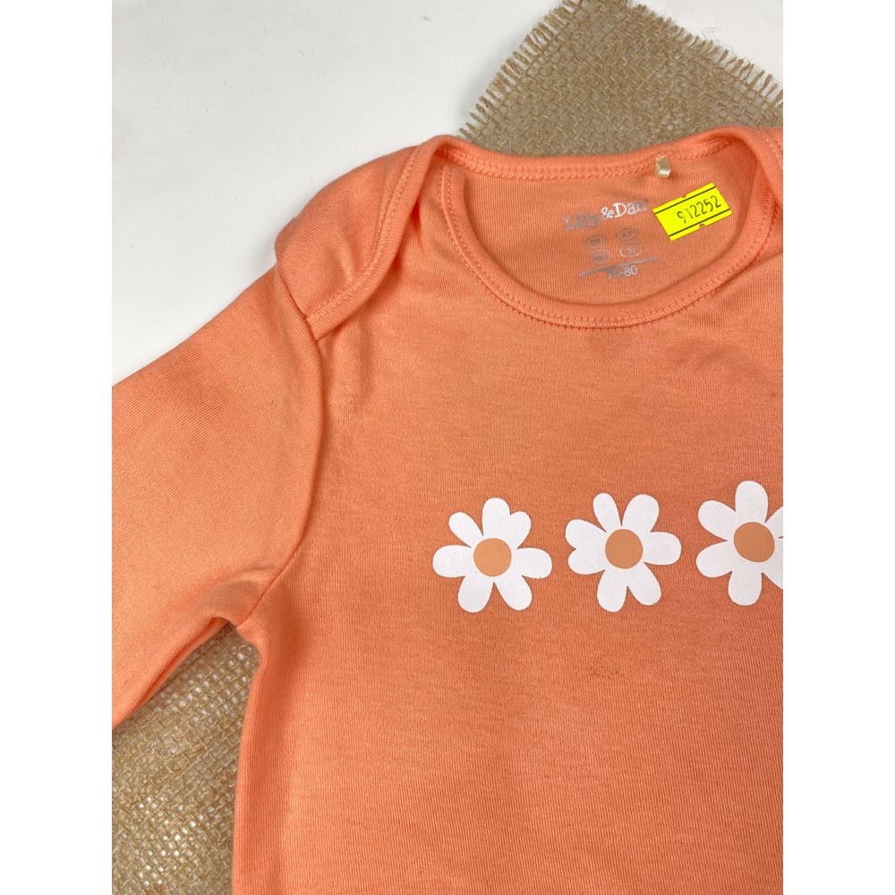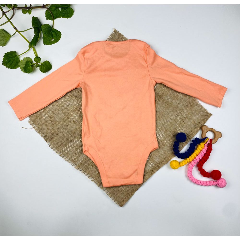 بادی نوزادی دخترانه آستین بلند طرح گل بادی ساده یقه گرد گلبهی رنگ – 6 تا 12 ماه