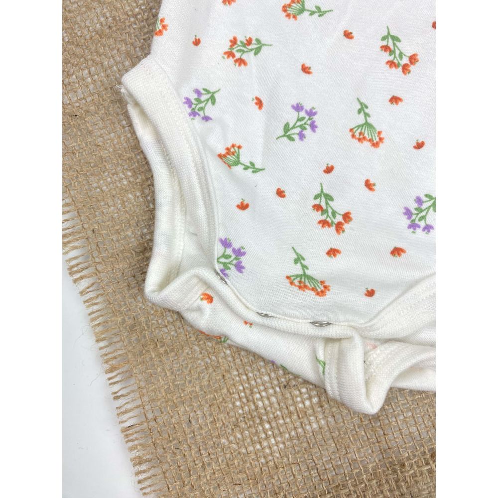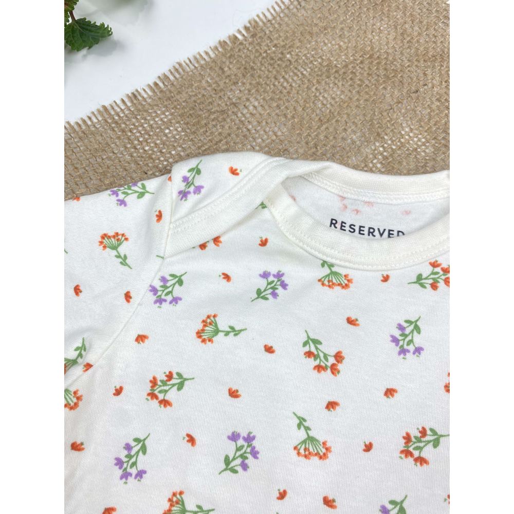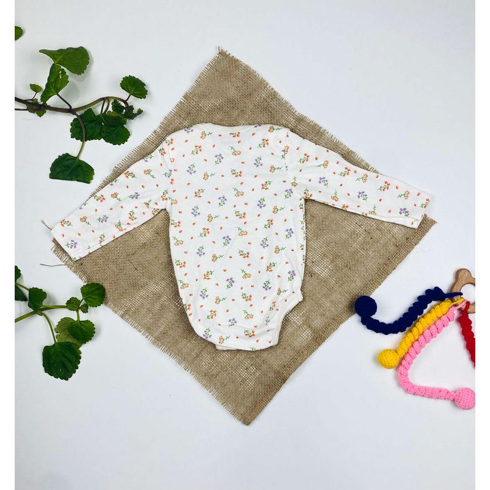 بادی نوزادی دخترانه آستین بلند طرح گل گلی یقه گرد سفید رنگ – 6 تا 9 ماه