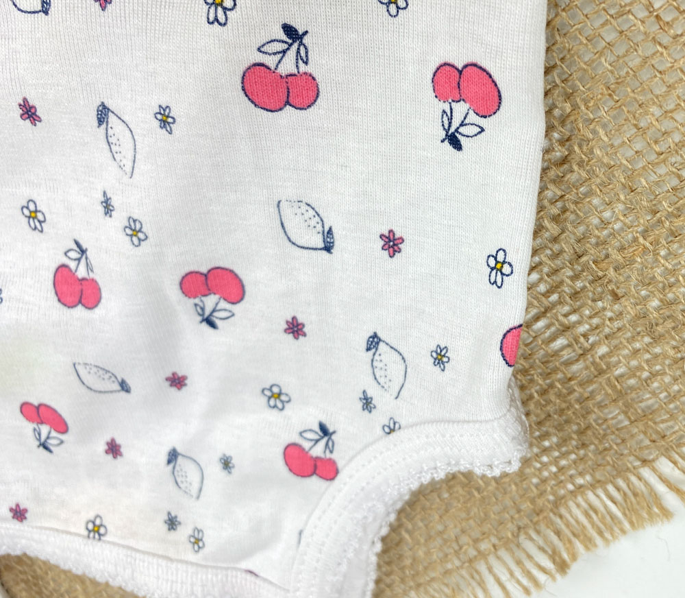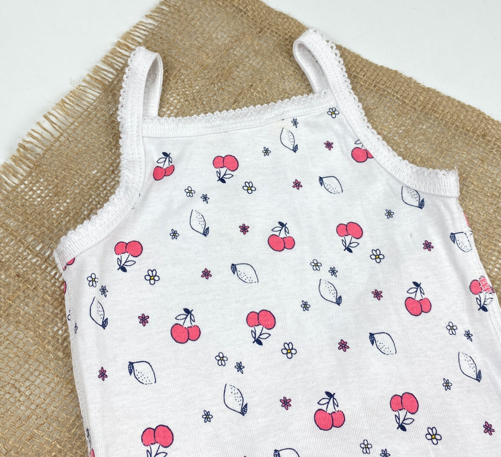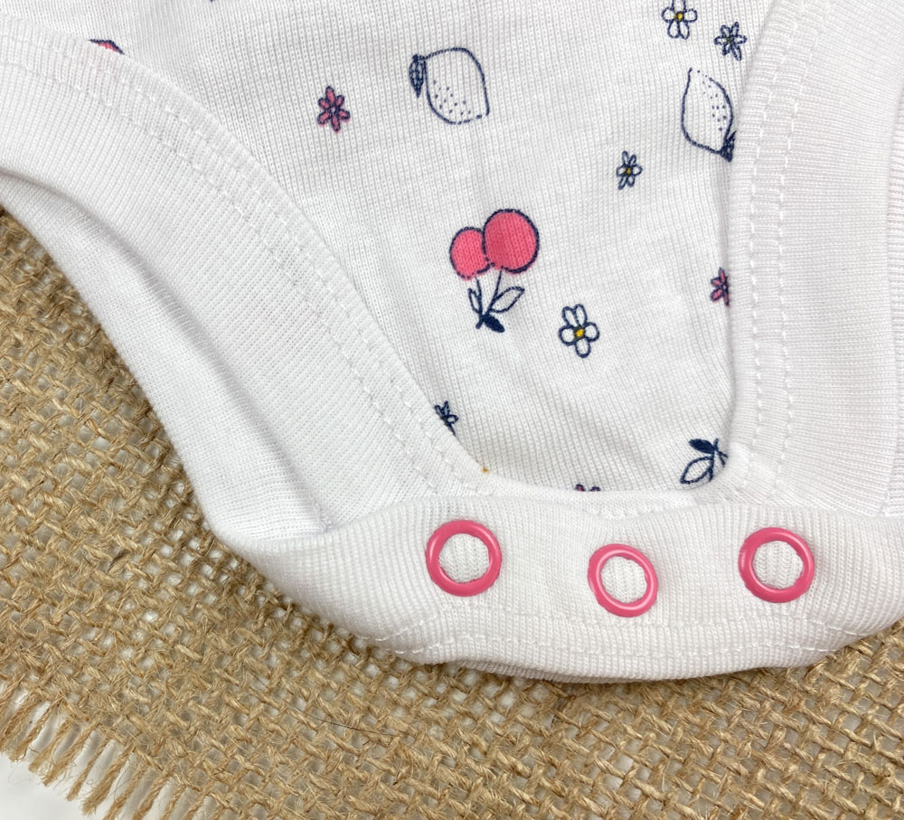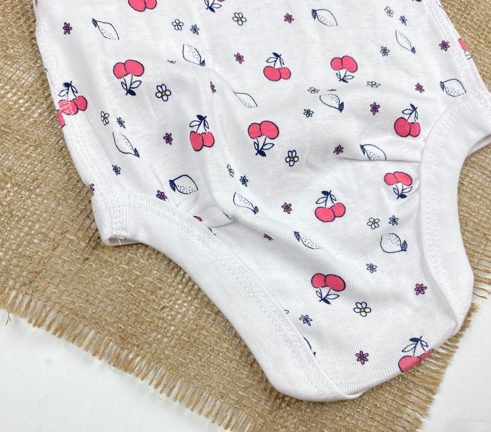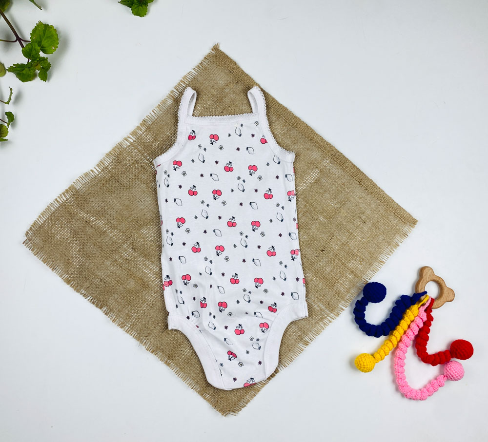 بادی نوزادی دخترانه آستین تاپ برند لوپیلو طرح بندی یقه خشتی سفید رنگ – 6 تا 12 ماه