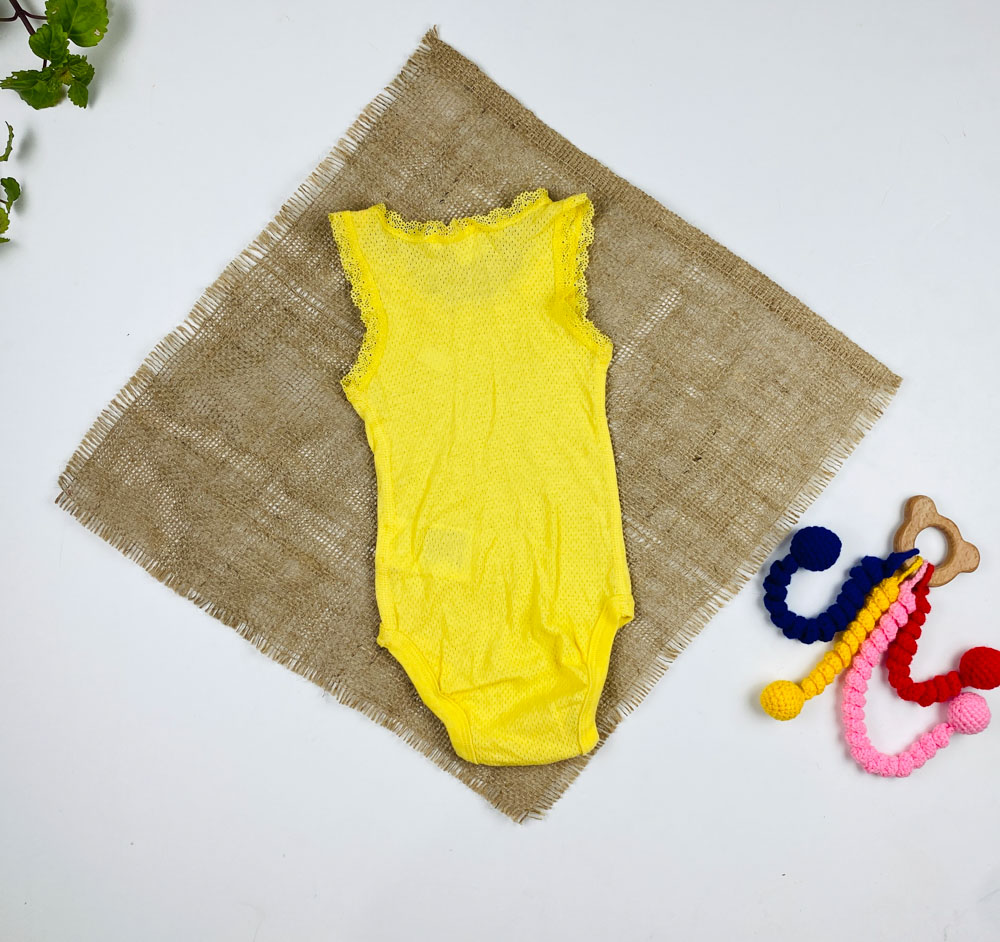 بادی نوزادی دخترانه آستین تاپ برند لوپیلو طرح گیپوری زرد رنگ – 2 تا 6 ماه