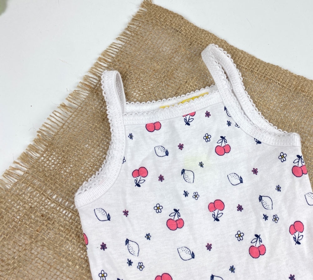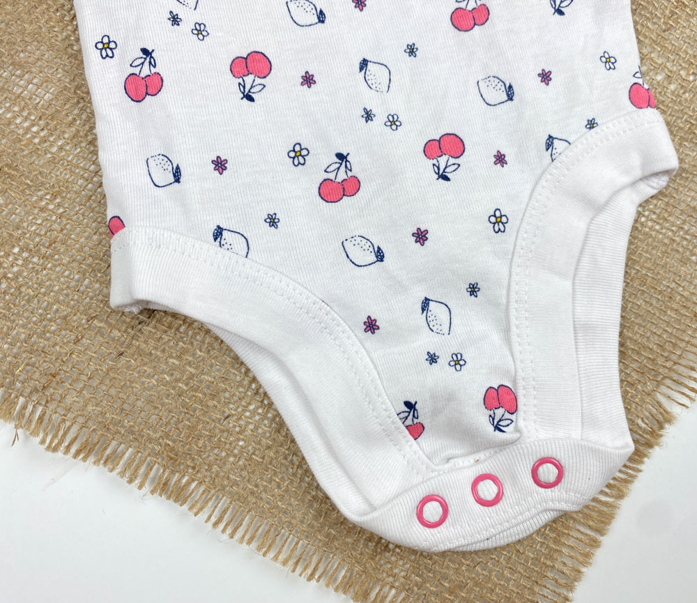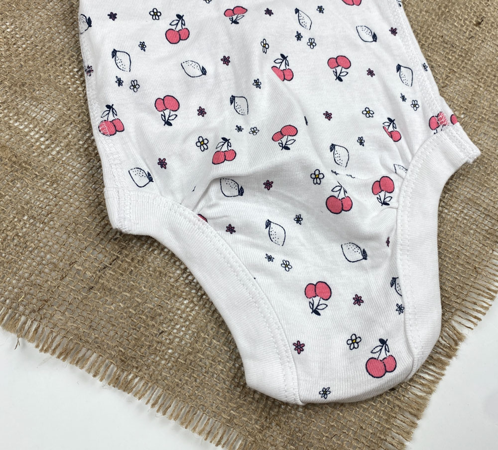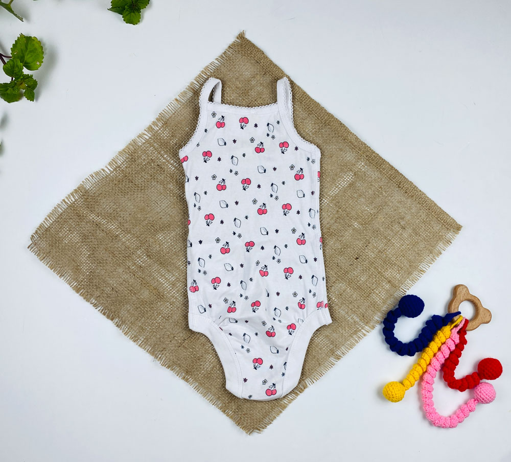 بادی نوزادی دخترانه آستین تاپ برند لوپیلو طرح گیلاس یقه خشتی سفید رنگ