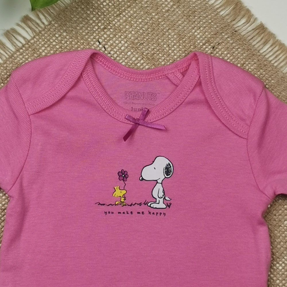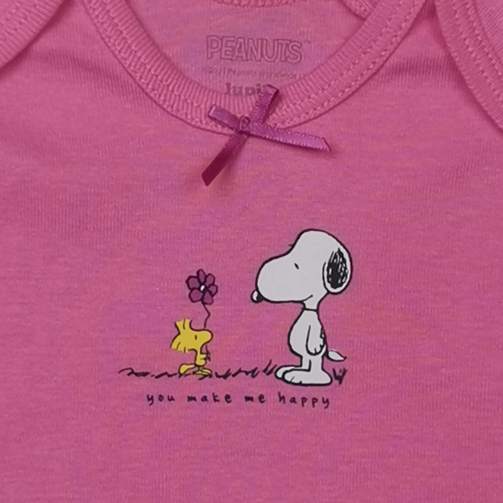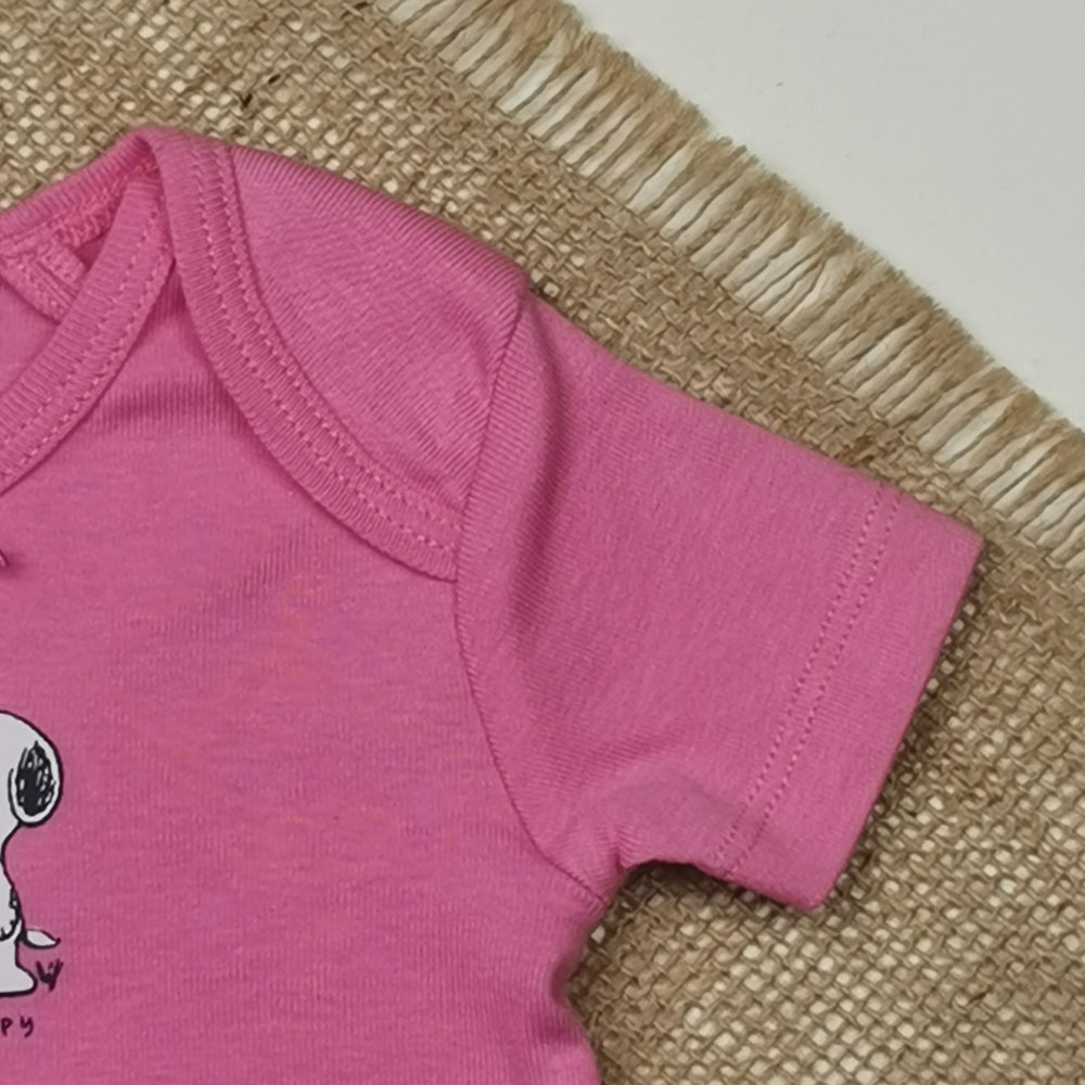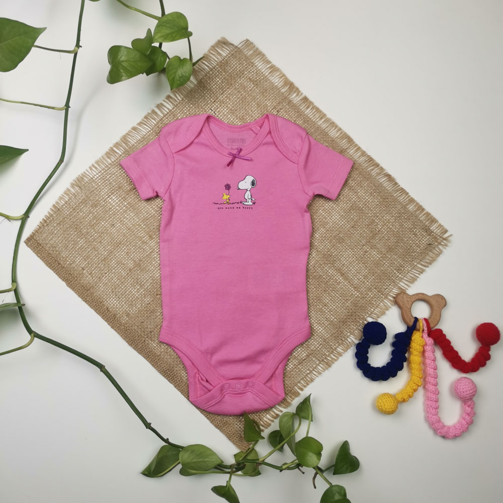 بادی نوزادی دخترانه آستین کوتاه برند لوپیلو طرح اسنوفی صورتی رنگ – 2 تا 6 ماه