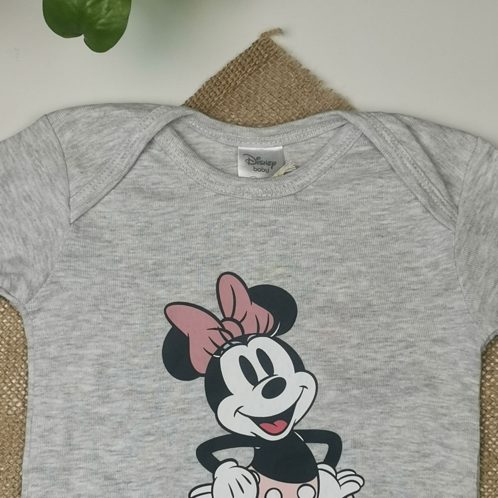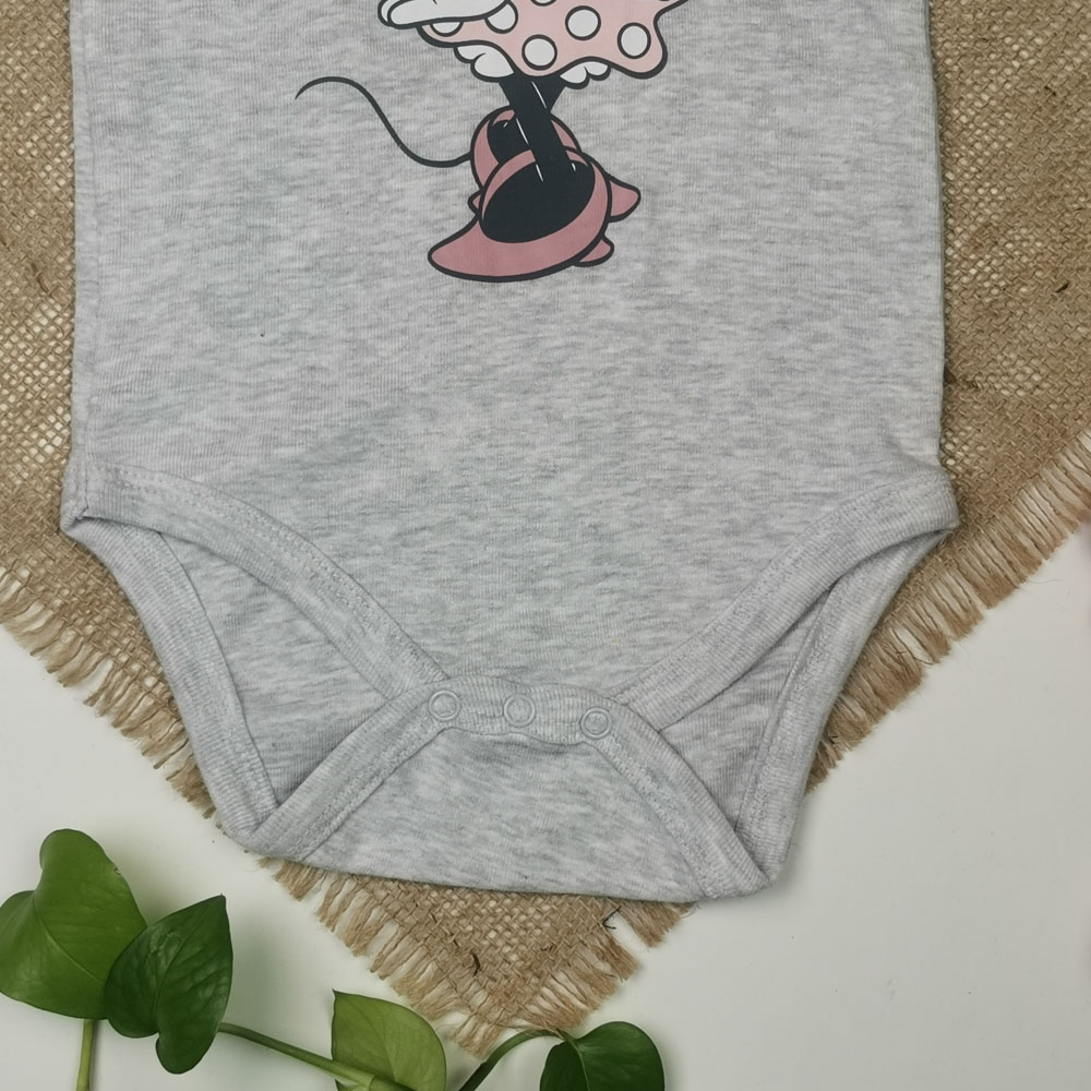 بادی نوزادی دخترانه آستین کوتاه برند Lily and Dan طرح مینی موس طوسی رنگ