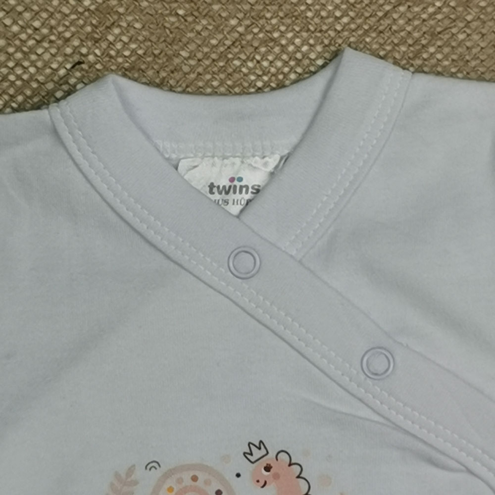 بادی نوزادی دخترانه آستین کوتاه برند twins طرح دایناسور طوسی رنگ