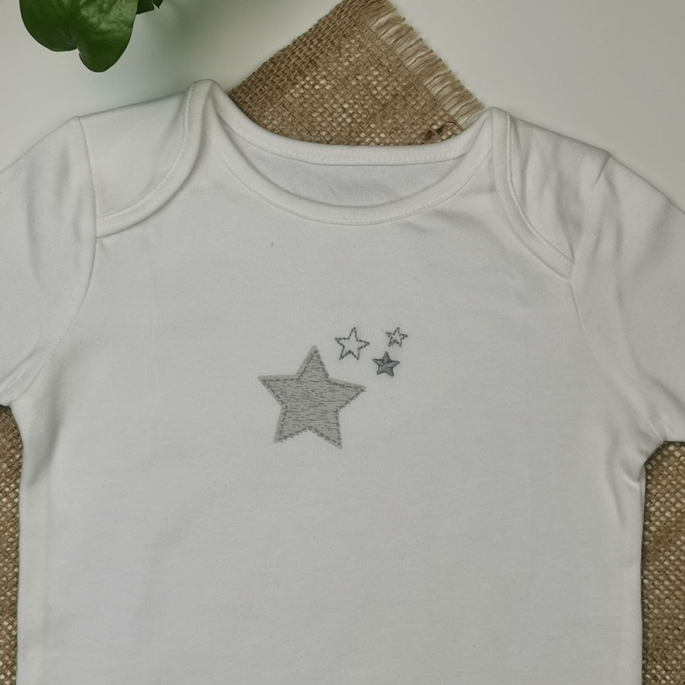 بادی نوزادی دخترانه آستین کوتاه طرح ستاره جاو بسته سفید رنگ – 12-24 ماه