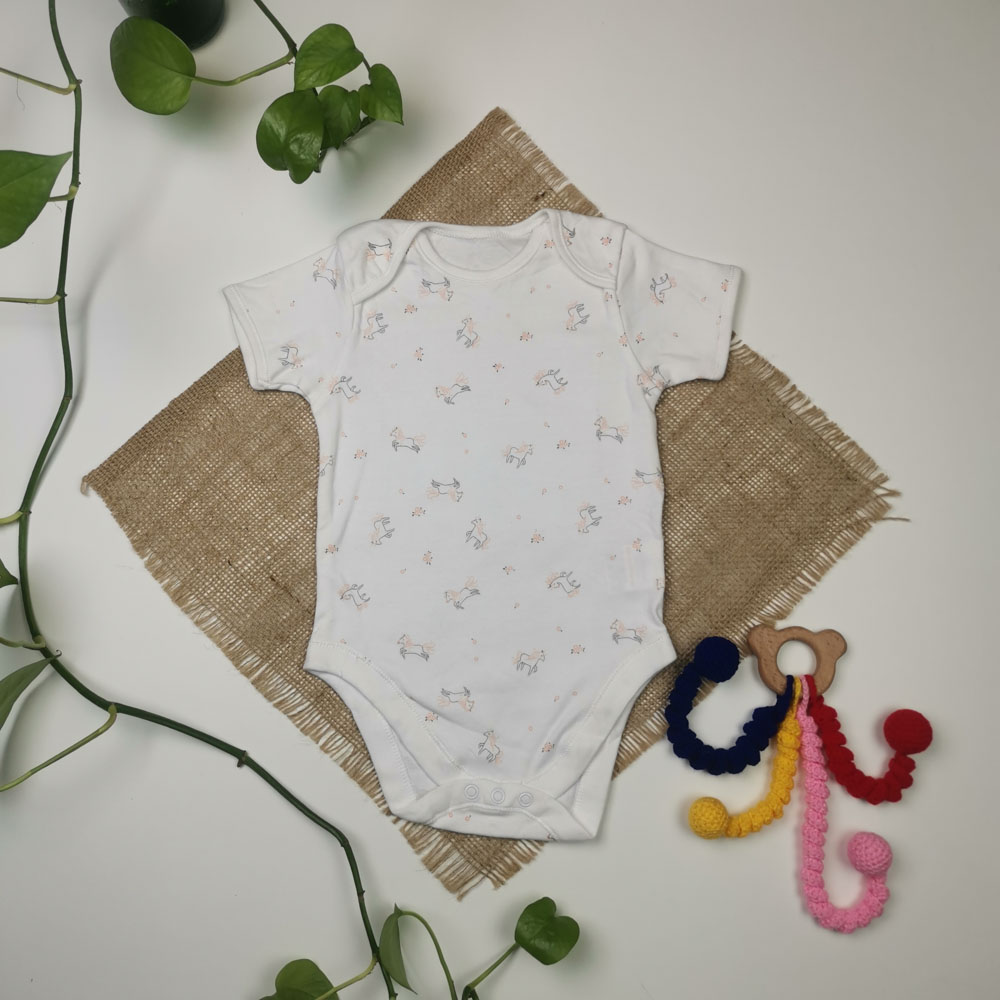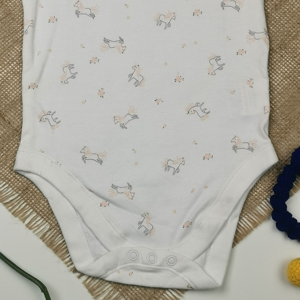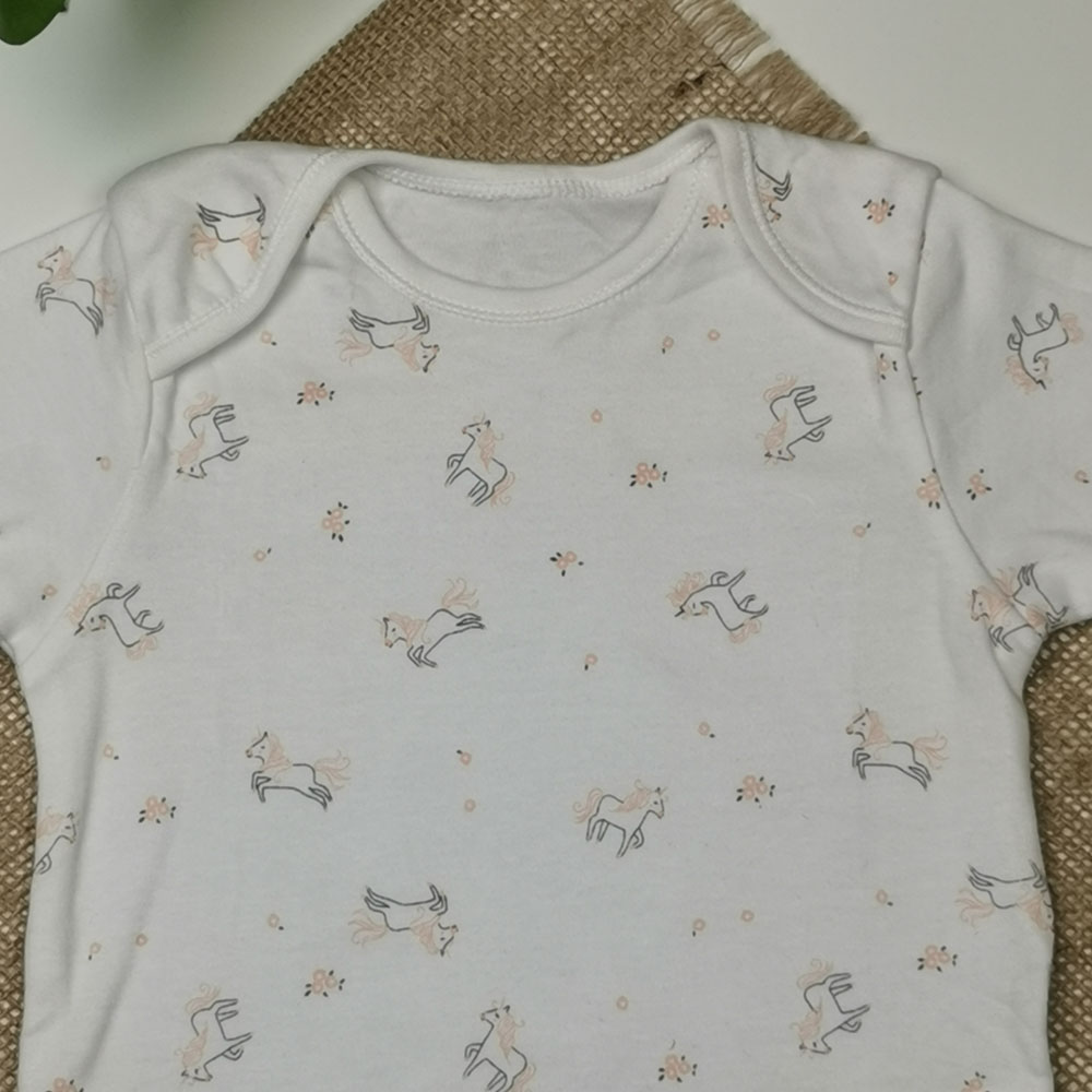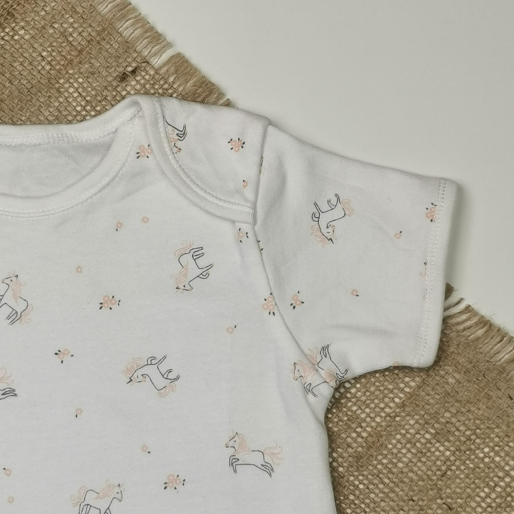 بادی نوزادی دخترانه آستین کوتاه طرح یونیکورن سفید رنگ – 12-18 ماه