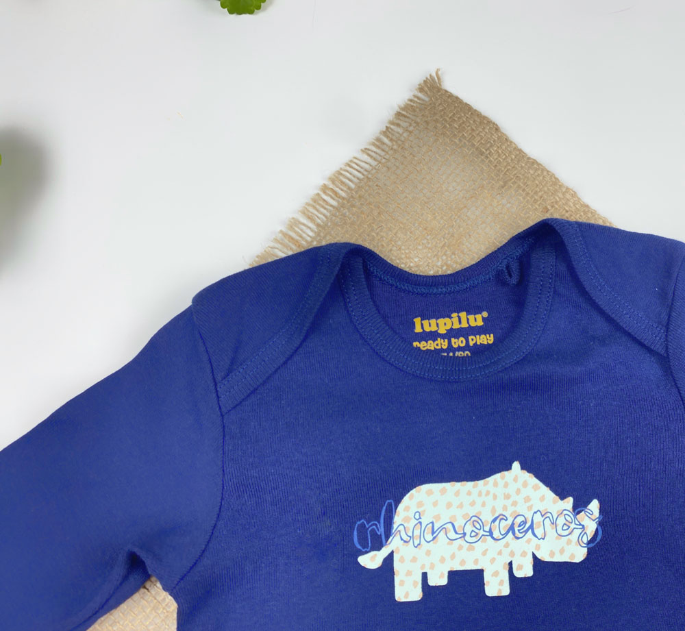 بادی نوزادی پسرانه آستین بلند برند لوپیلو طرح فیل یقه گرد سرمه ای رنگ