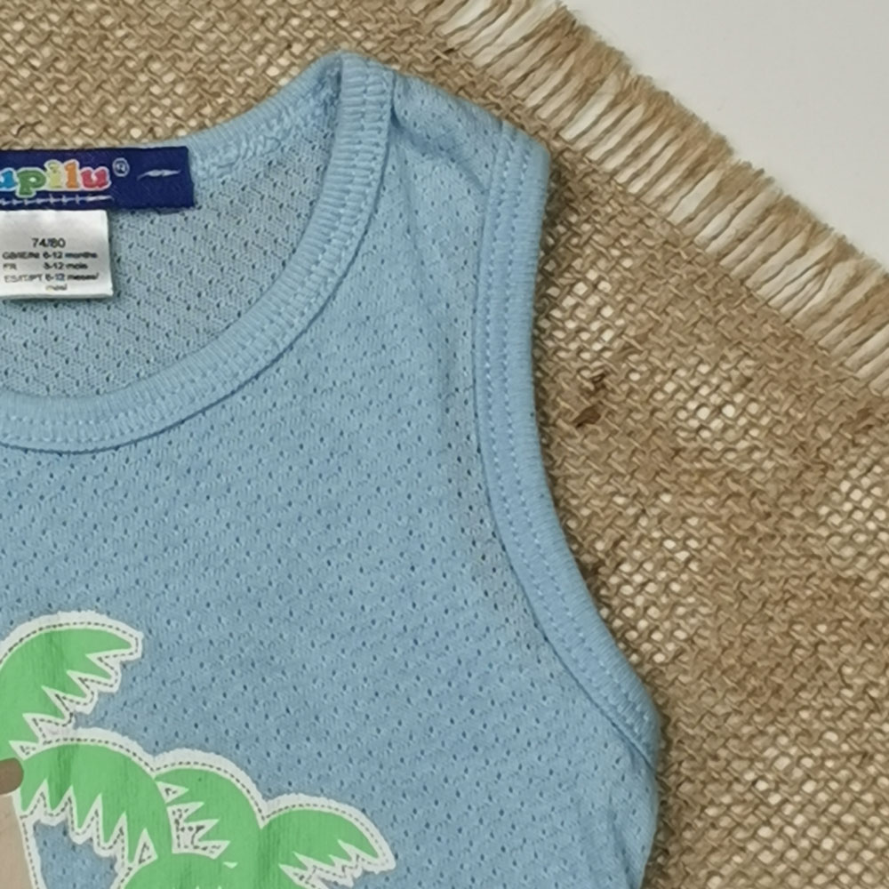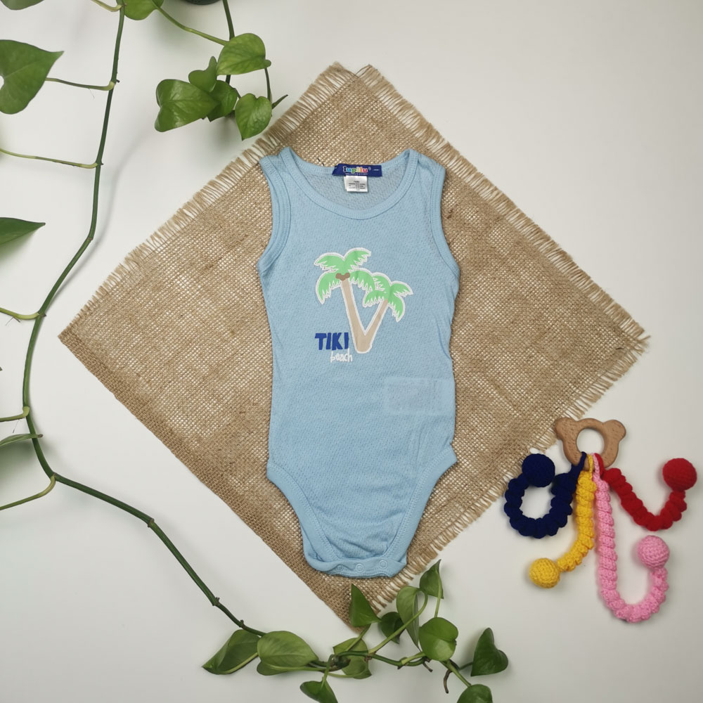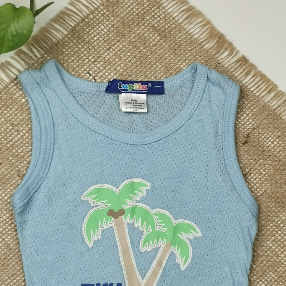 بادی نوزادی پسرانه آستین تاپ برند لوپیلو طرح نخل آبی رنگ – 6 تا 12 ماه