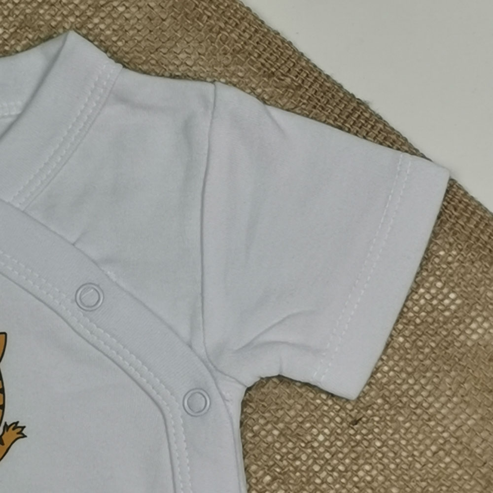 بادی نوزادی پسرانه آستین کوتاه برند twins طرح ببر قهوه ای رنگ
