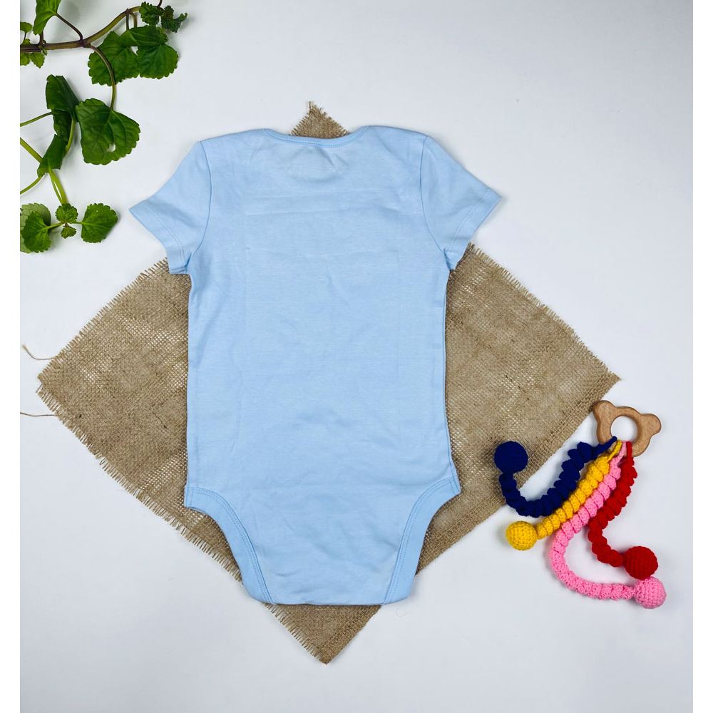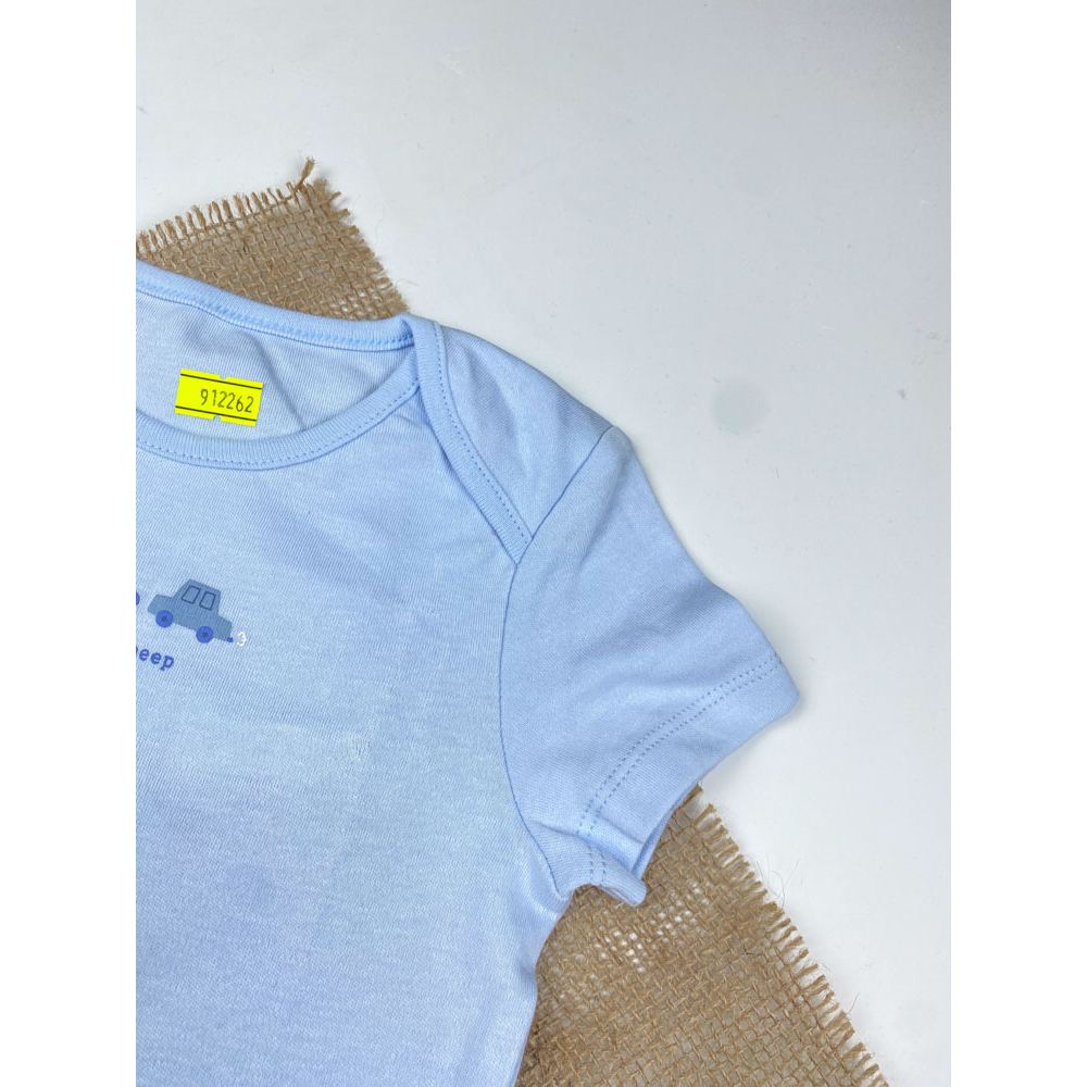 بادی نوزادی پسرانه آستین کوتاه طرح ماشین یقه گرد آبی روشن رنگ – 12 تا 24 ماه