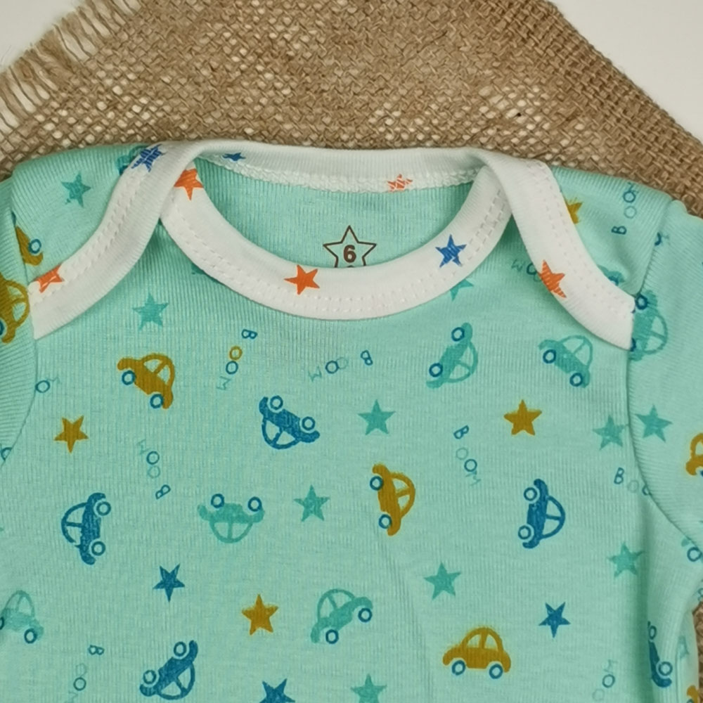 بادی نوزادی پسرانه آستین کوتاه طرح ماشین فیروزه ای رنگ – 3-6 ماه