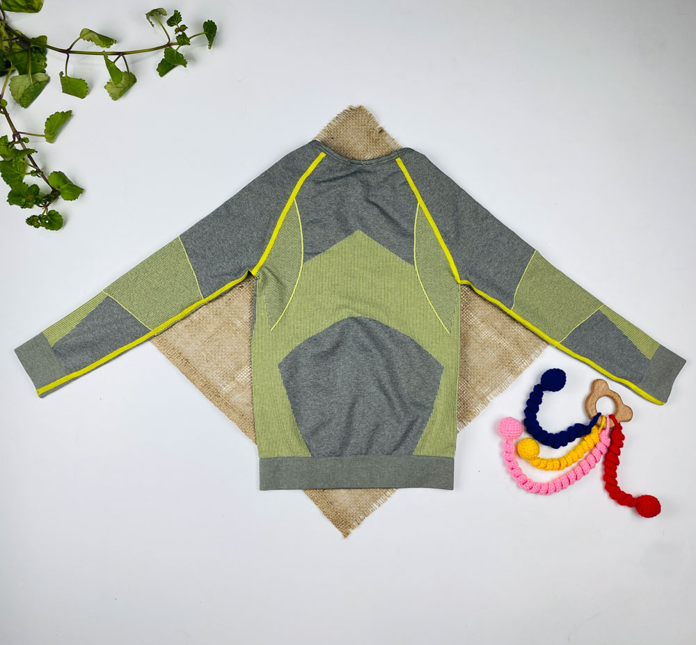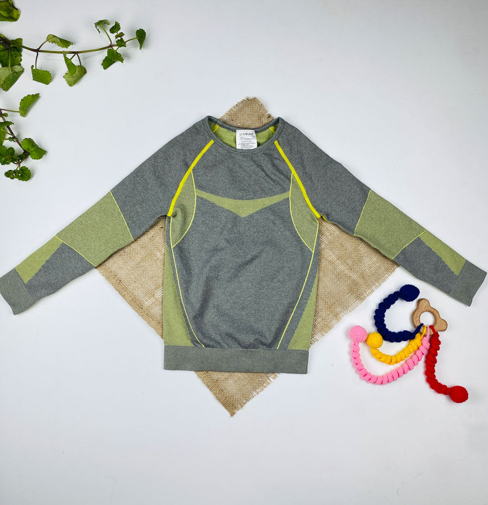 بلوز آستین بلند طرح اشکال خطوط یقه گرد طوسی رنگ – 4 تا 6 سال