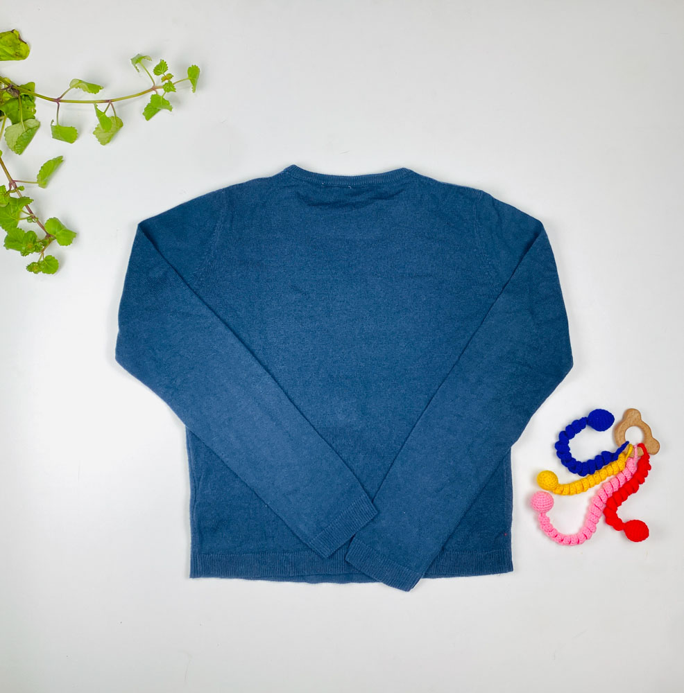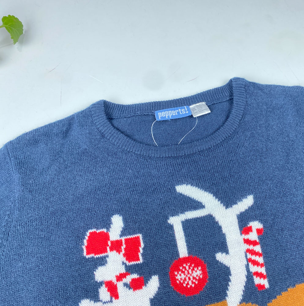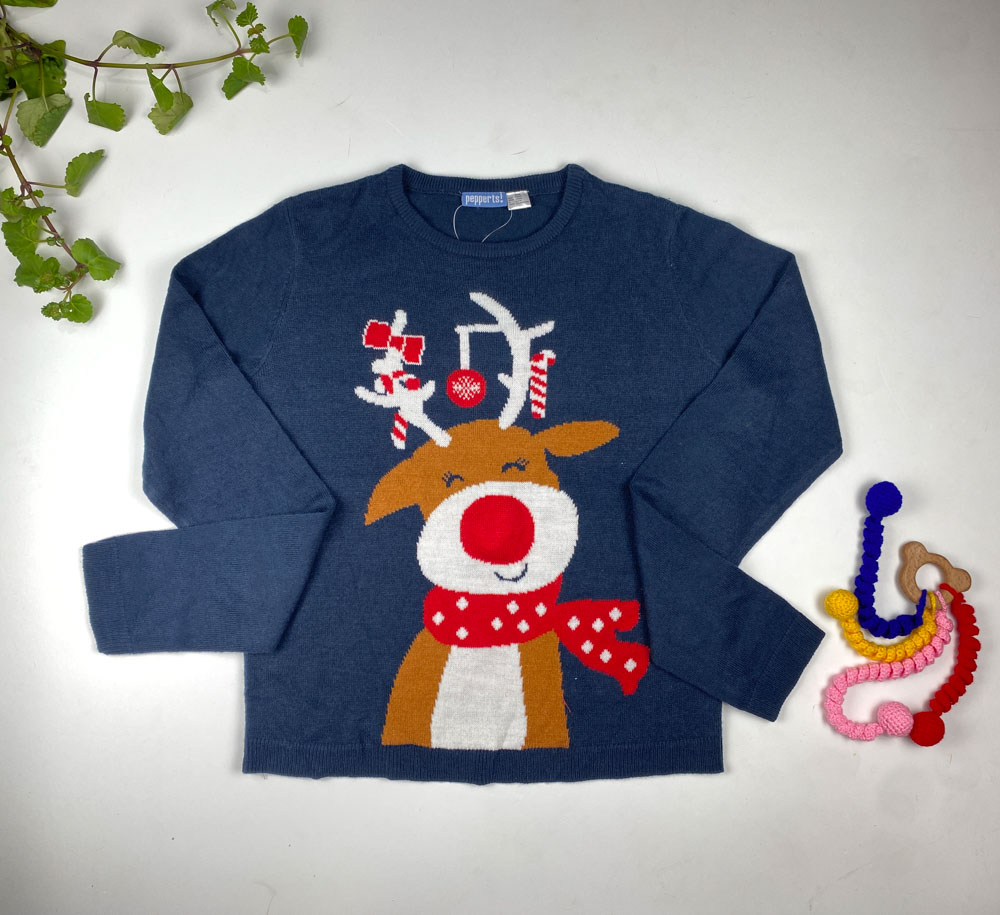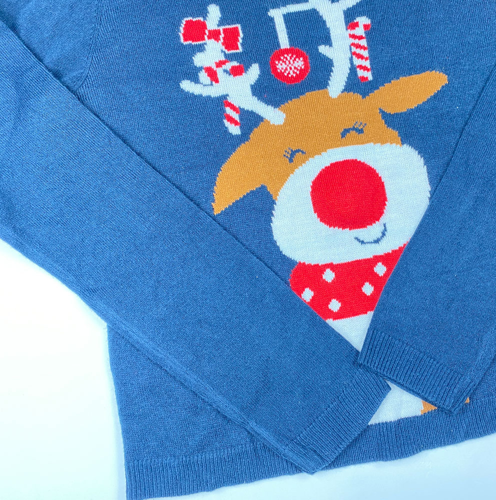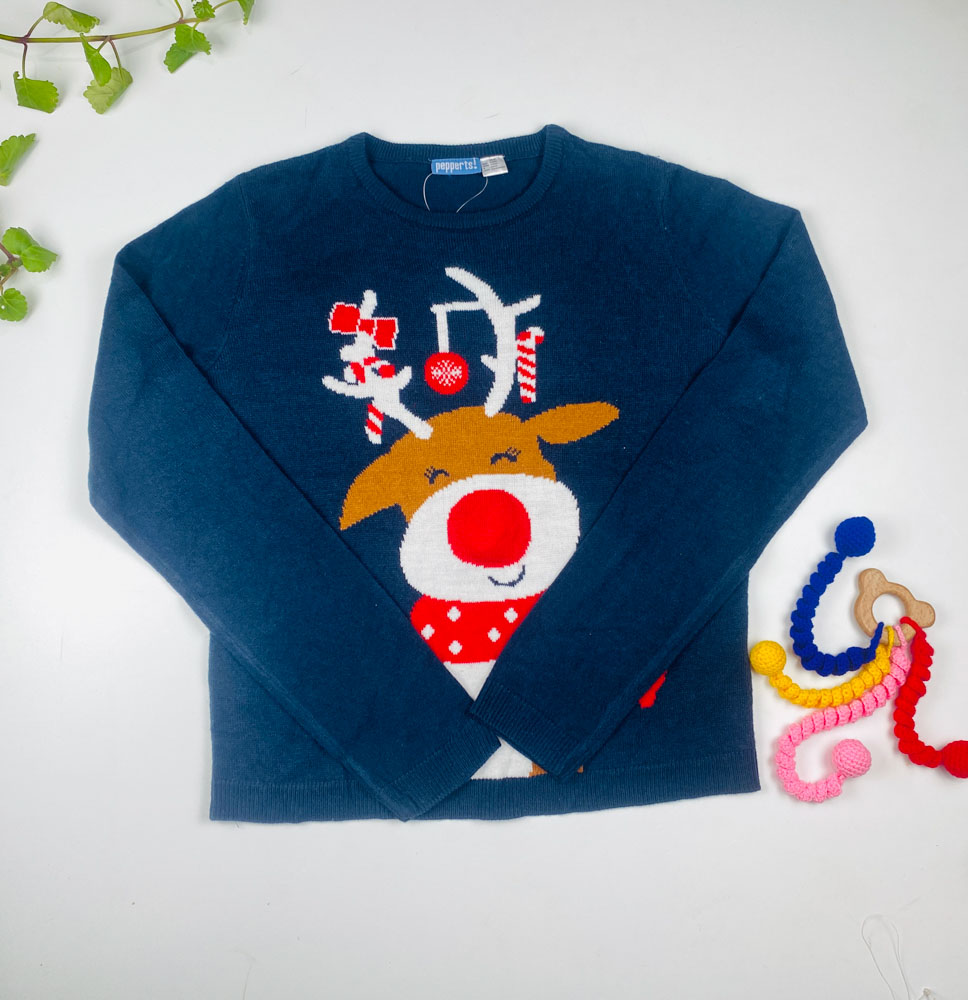 بلوز آستین بلند طرح گوزن کیریسمسی یقه گرد سرمه ای رنگ – 12 تا 14 سال