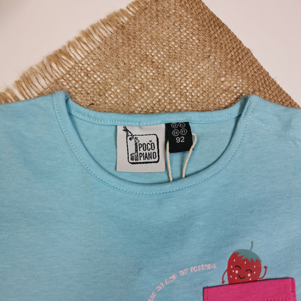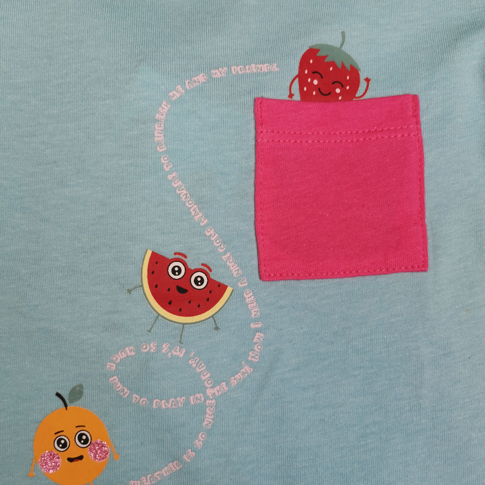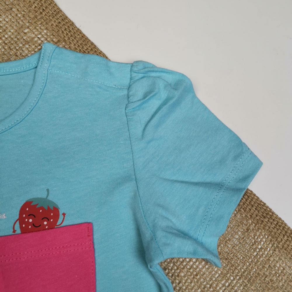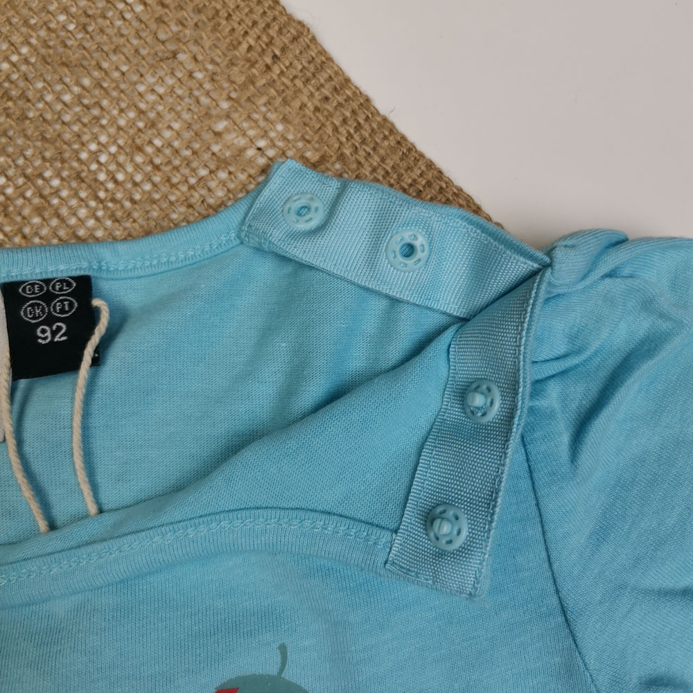 بلوز آستین کوتاه طرح لیوان آب میوه آبی رنگ – 2 سال